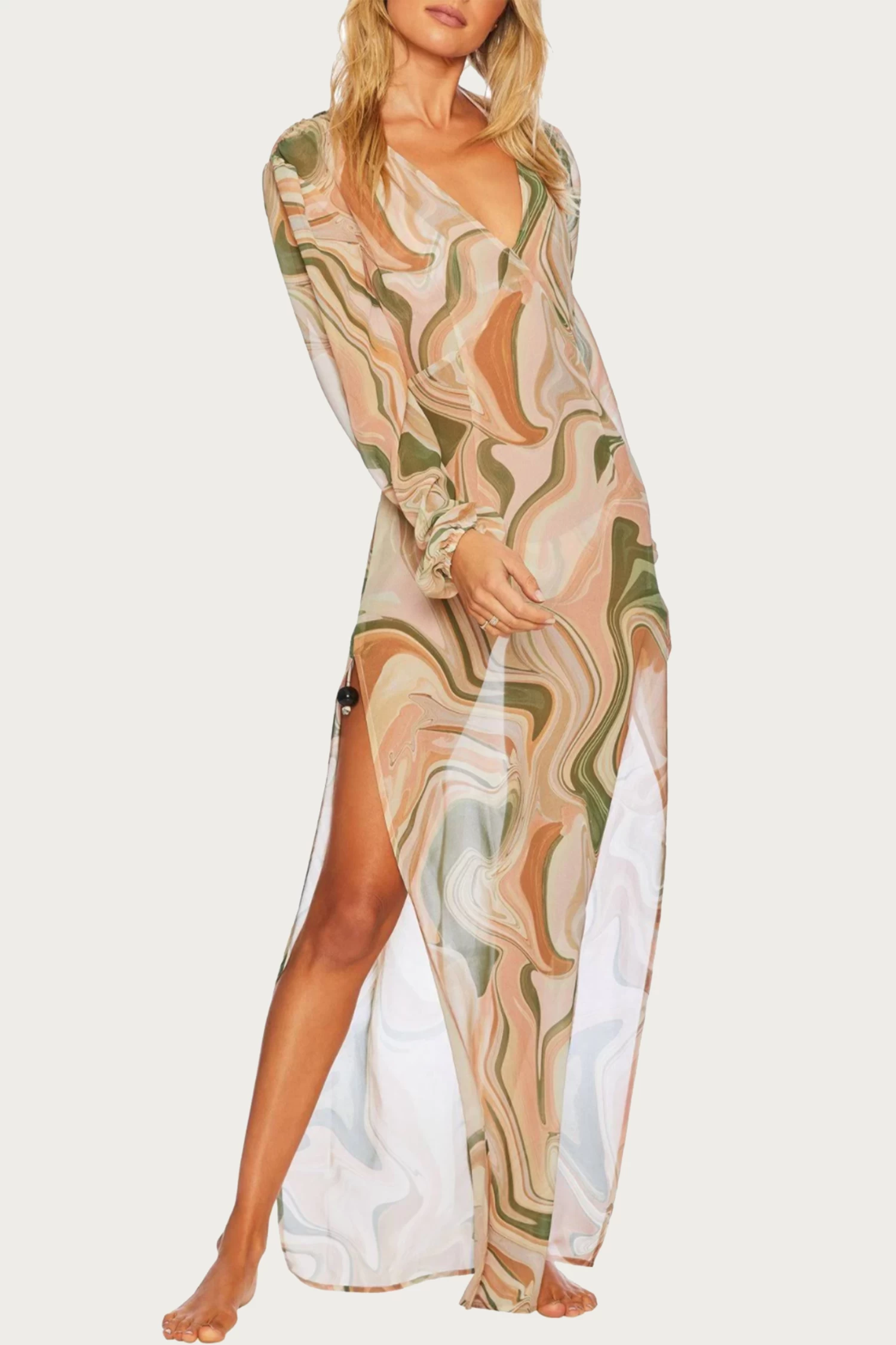 A versatile summer style, this coverup from Beach Riot will feel just as effective on lunch dates as it does by the pool when worn as a coverup. Sheer and lightweight, the maxi dress features a surplice neckline with a slimming bodice and slits up both sides. We love it layered over the label’s bikini in the same marble print.