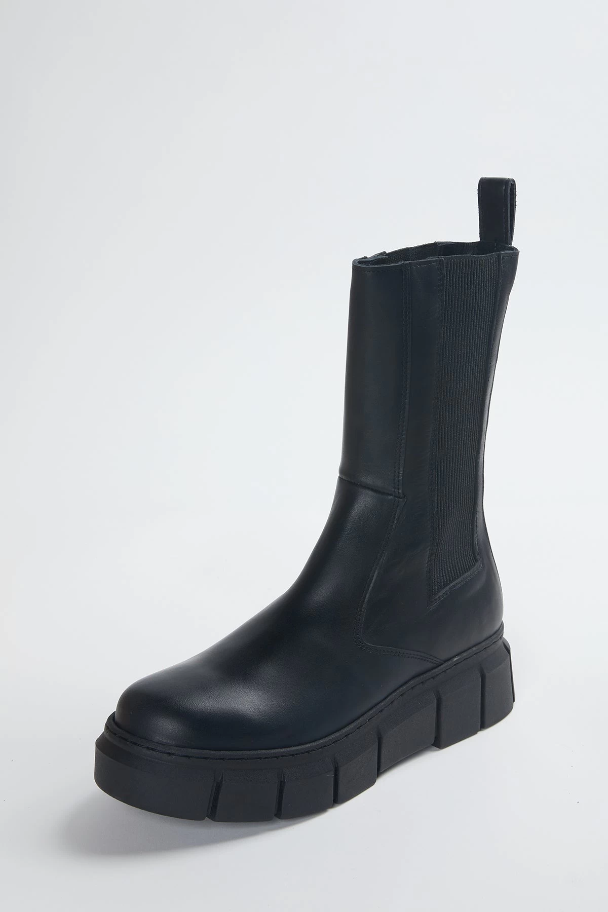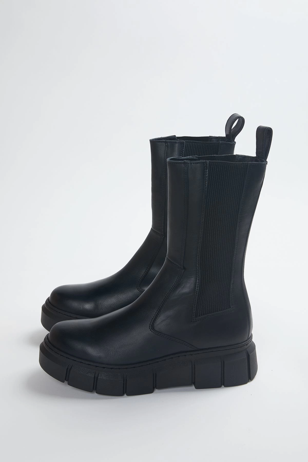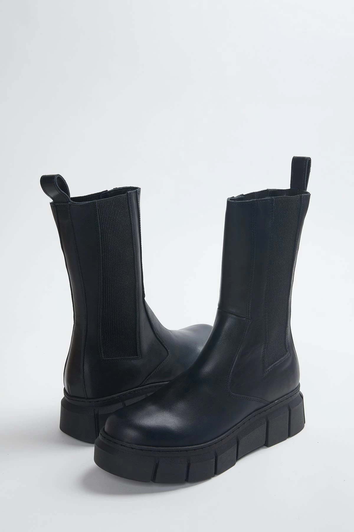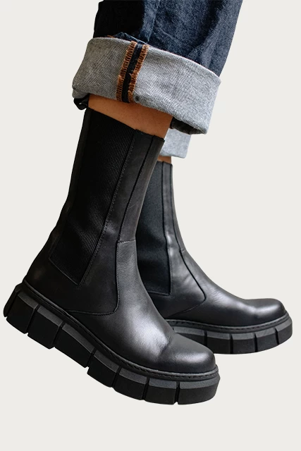 Riffing on combat styles, Alohas’ ‘Armor’ Chelsea boots are right on trend. They are made from black leather with an elongated upper and set on a chunky lug sole for plenty of grip. Contrast the heavy silhouette with mini dresses or skirts.Â