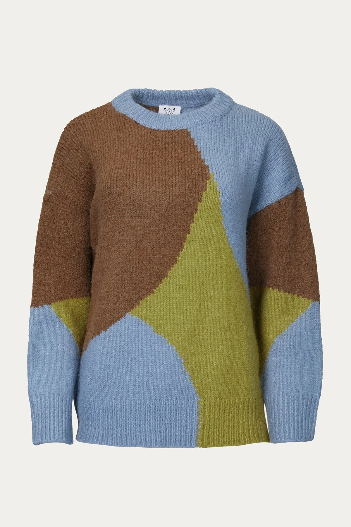 Six Crisp Days’ knitwear promises unparalleled comfort and this ‘Ample’ sweater is no exception. Made of soft ribbed-knit, it features an abstract design of brown, blue and green hues. It has a relaxed fit enhanced by dropped shoulders and is finished with insulating ribbed trims.Â