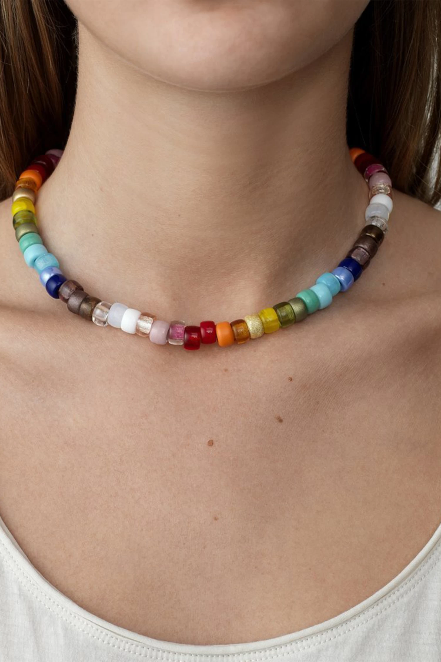 Anni Lu’s signature use of color gives her jewelry so much personality. Crafted from 18K gold-plated brass, this chunky necklace is strung with an array of colorful glass and resin beads. Wear it alone or layer it with similar styles from the label.