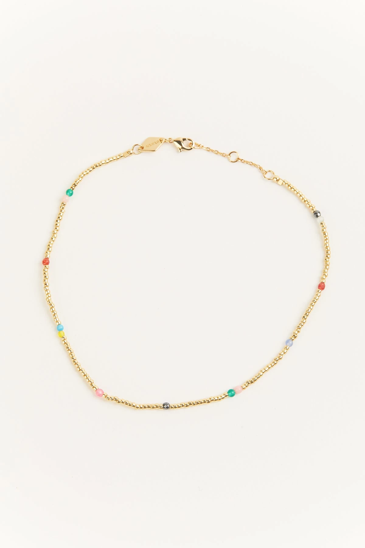 Designed in Denmark and made by hand, Anni Lu is known for her delicate pieces that can be worn everyday. This dainty anklet is cast from 18K gold-plated brass and dotted with seed beads and gemstones. The adjustable chain ensures a perfect fit.