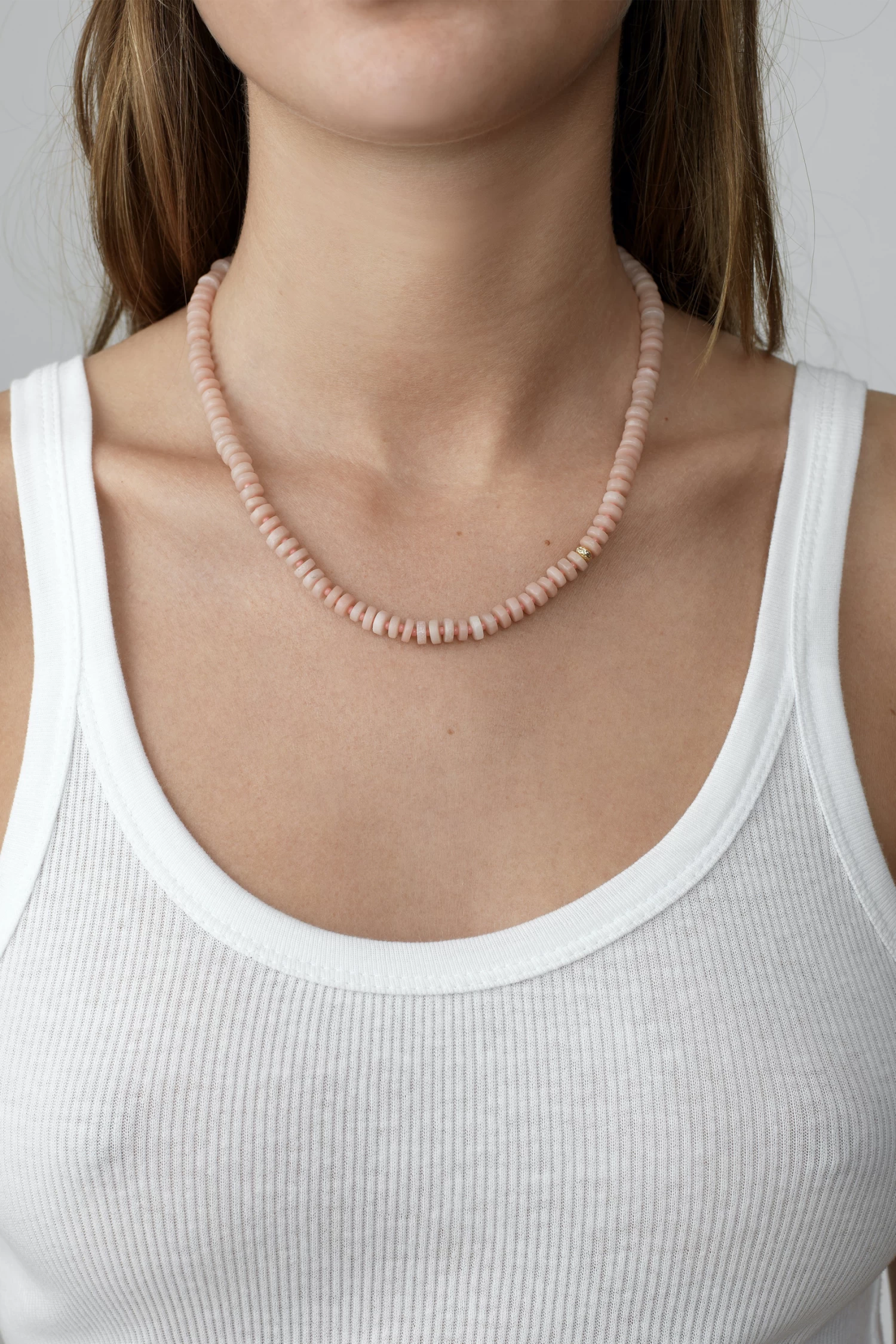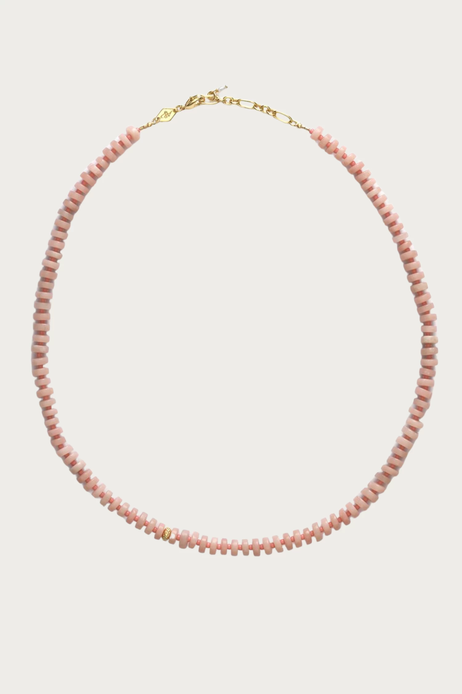 Anni Lu’s signature use of color gives her jewelry so much personality. This 18K gold-plated necklace is strung with glass and pink opal heishi beads. Wear yours alone or layer with similar styles from the label.