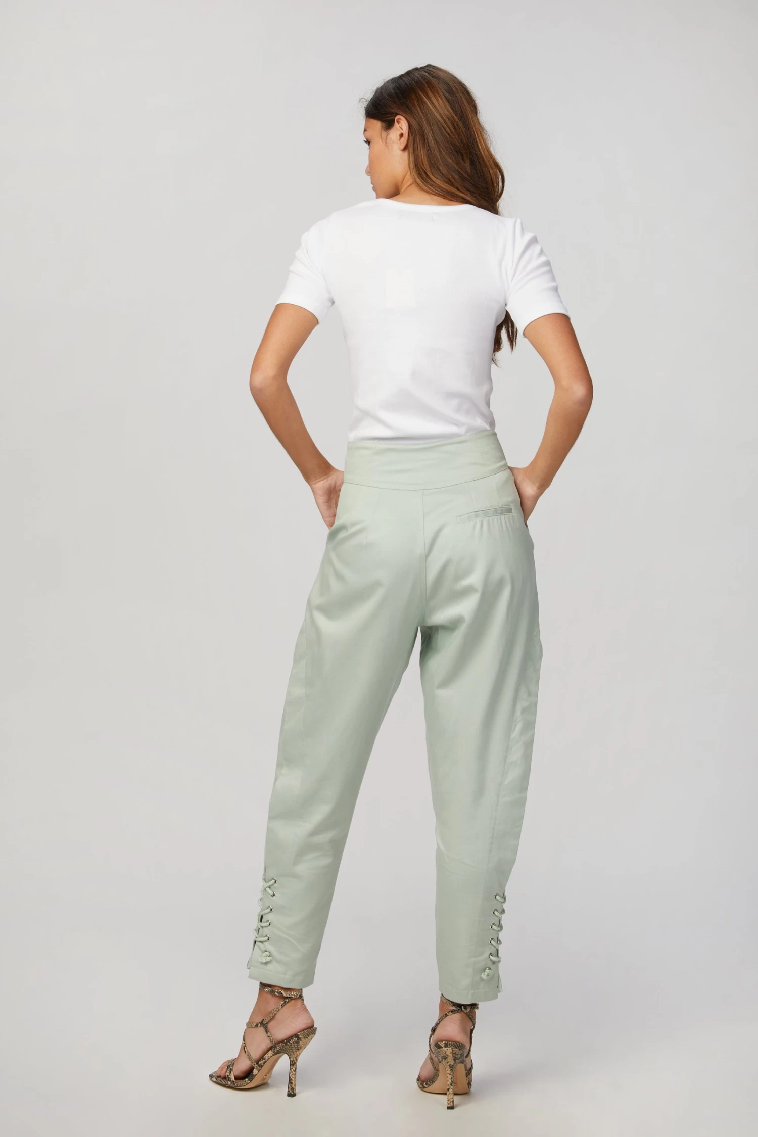 Versatility in fashion is key and you will wear these Arielle Pants time and time again. Go for the simple Scandinavian aesthetic and pair these pants with a plain white tee and sneakers. On a different occasion, dress them up with a heeled sandal and simple, sleek tank. These pants are cut from medium weight cotton twill, feature a high waist and lace-up details on the tapered leg.