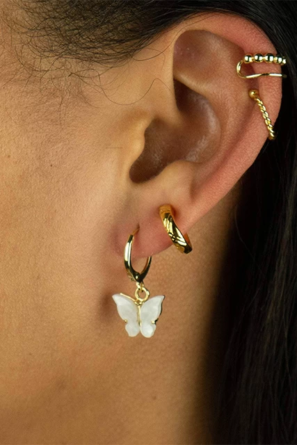 ATHENA GOLD-PLATED BUTTERFLY CHARM HUGGIE EARRINGS