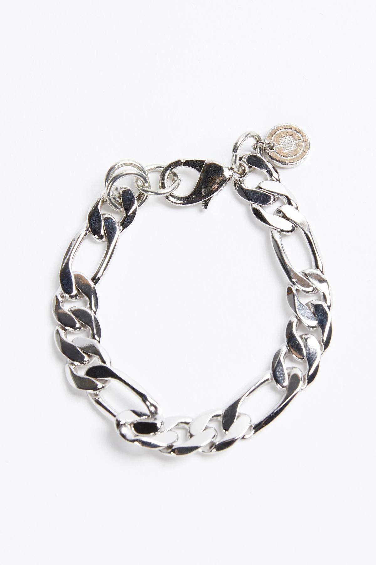 Eklexic designer Alexis Gordon Kelly creates her pieces to channel audacity and fearlessness. This ‘Axel’ bracelet is cast from rhodium-plated brass with Figaro-style links. Create your arm stack with the label’s other designs. Available in two lengths.