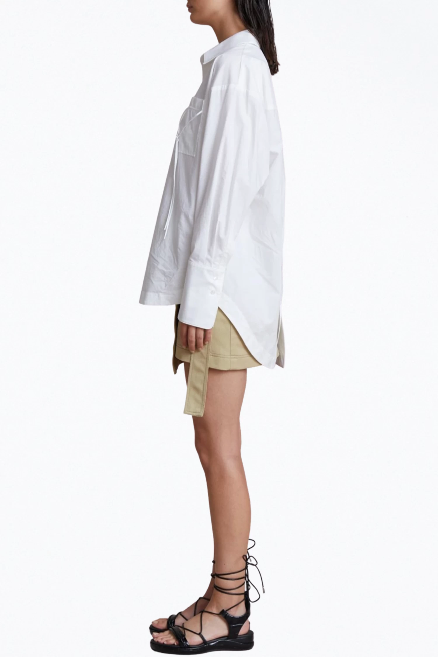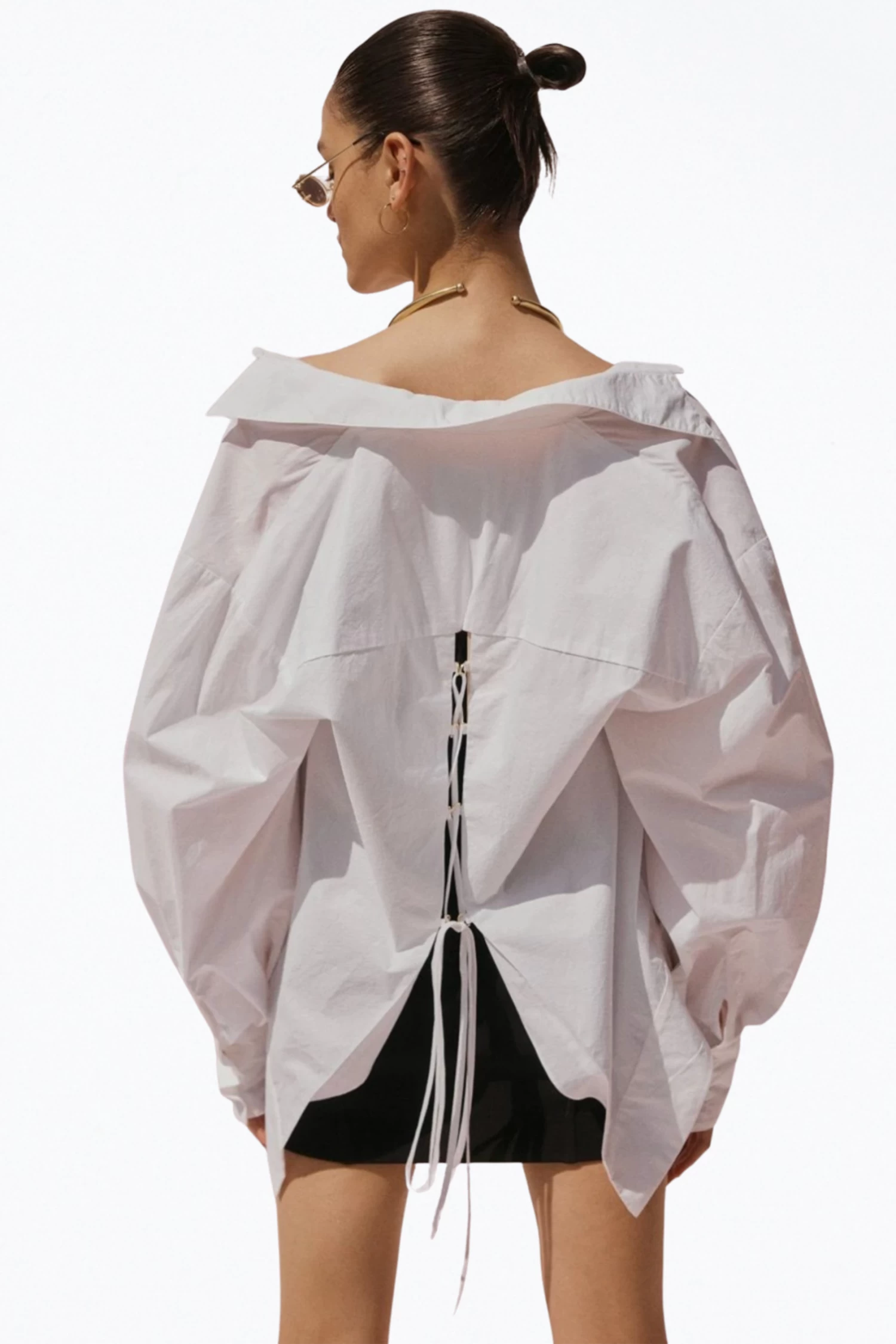 Bec + Bridge gives special detail to the classic white shirt with their ‘Blythe’ iteration. Made from cotton, it’s cut to a relaxed silhouette with a long-line hem that drapes down at the back. Be sure to tie your hair back to show the split open back with tie closures. Â