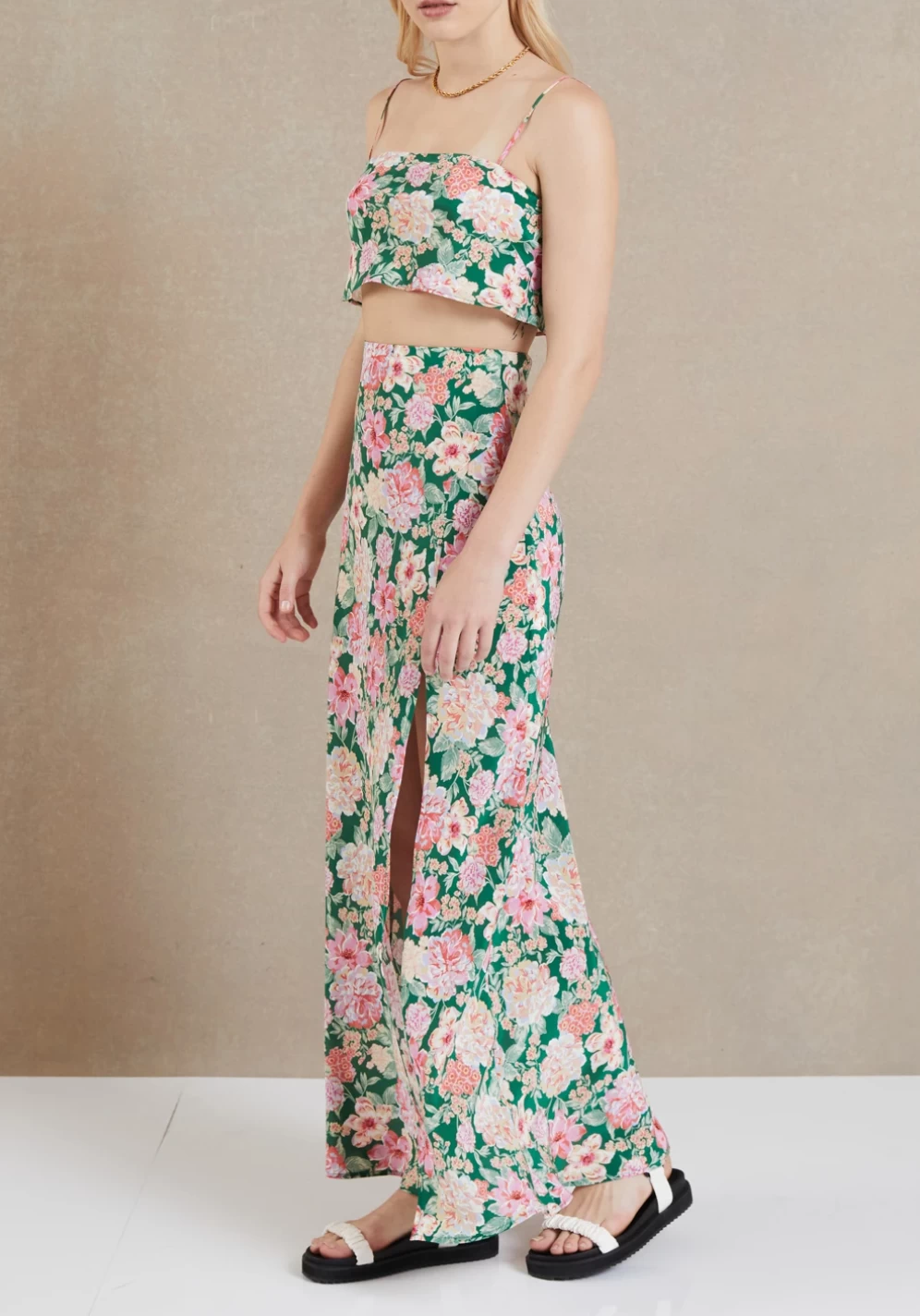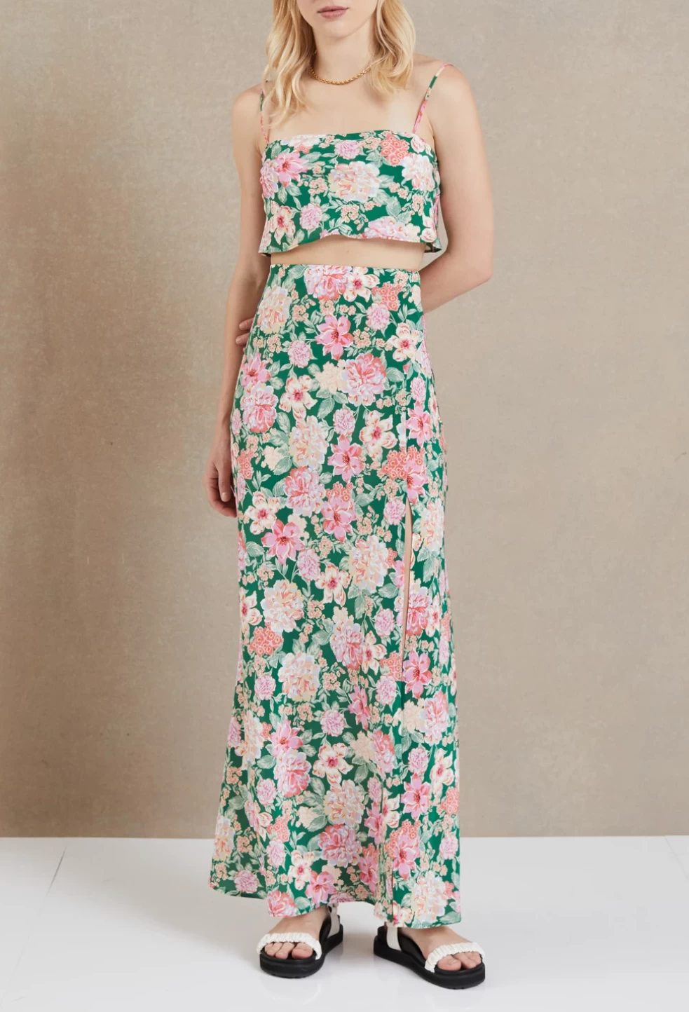 Designed and handmade in Australia, Bec + Bridge’s maxi skirt is made from lustrous silk with a bias cut – resulting in such a flattering fit. It has a comfortable, high-rise elastic waist and is enriched with pretty blooms. The alluring side seam slit helps with ease of movement.
