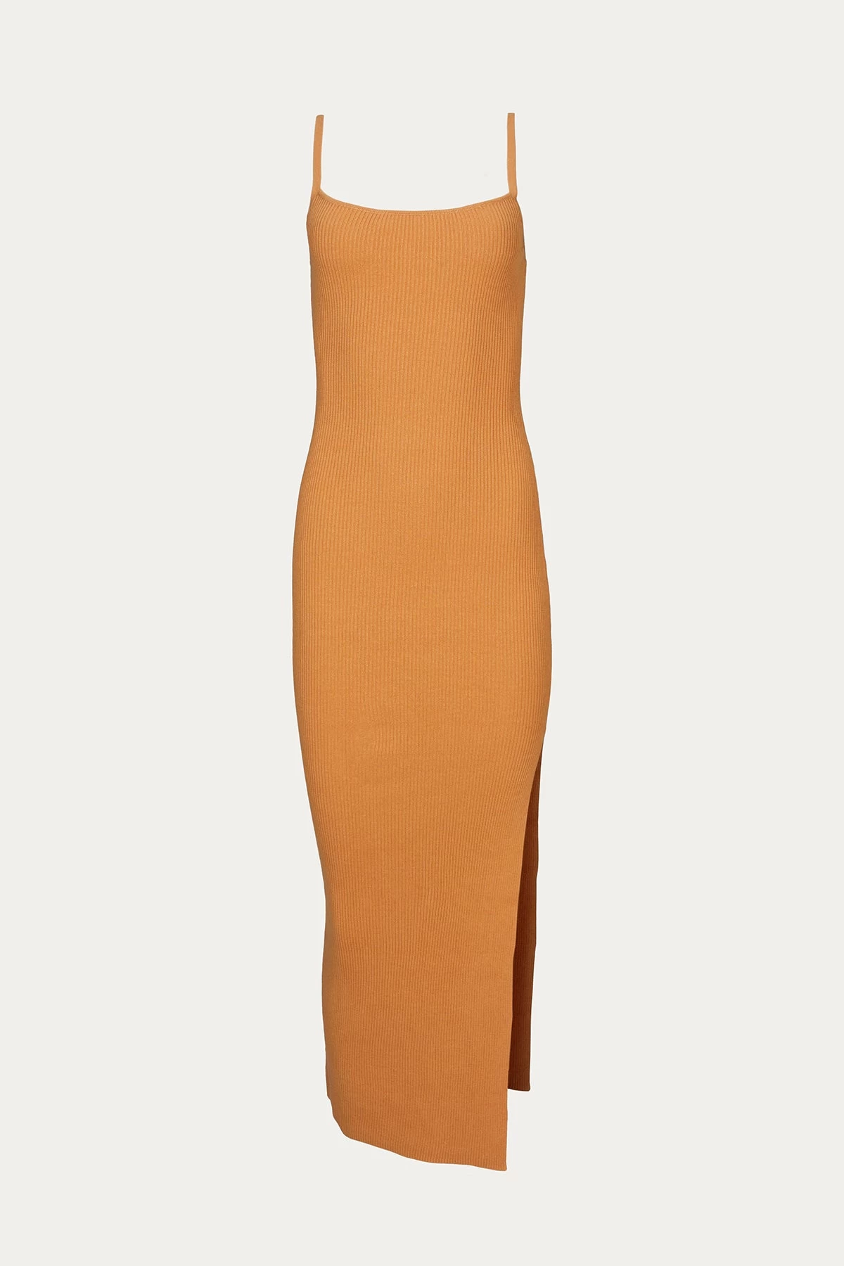 True to fitting form, Bec + Bridge’s ‘Margot’ midi dress is made from a ribbed-knit that will adhere to the body’s natural contours. It comes in a rustic orange hue and has thin straps and a high leg split. Team yours with sneakers or chunky sandals in the summer and pair it with a sweater and boots when temperatures drop.