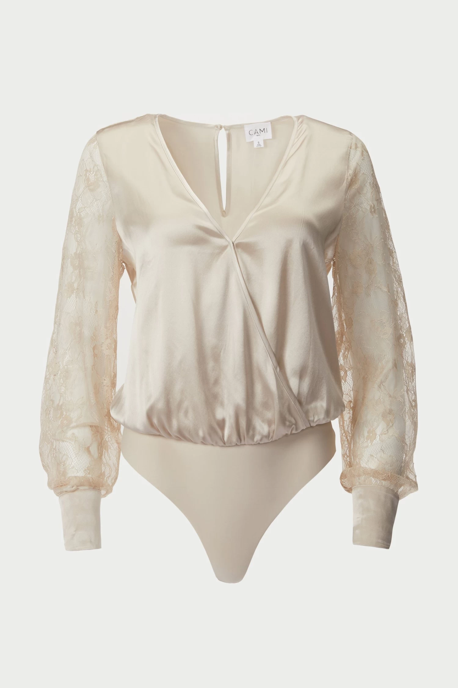 You’ll feel flirty when you reach for this romantic, lace-sleeve ‘Bette’ bodysuit. Crafted from silk-charmeuse, the one-piece style eliminates material shifting or bunching and cannot come untucked. The cheeky bottom makes it undetectable under skirts and pants.