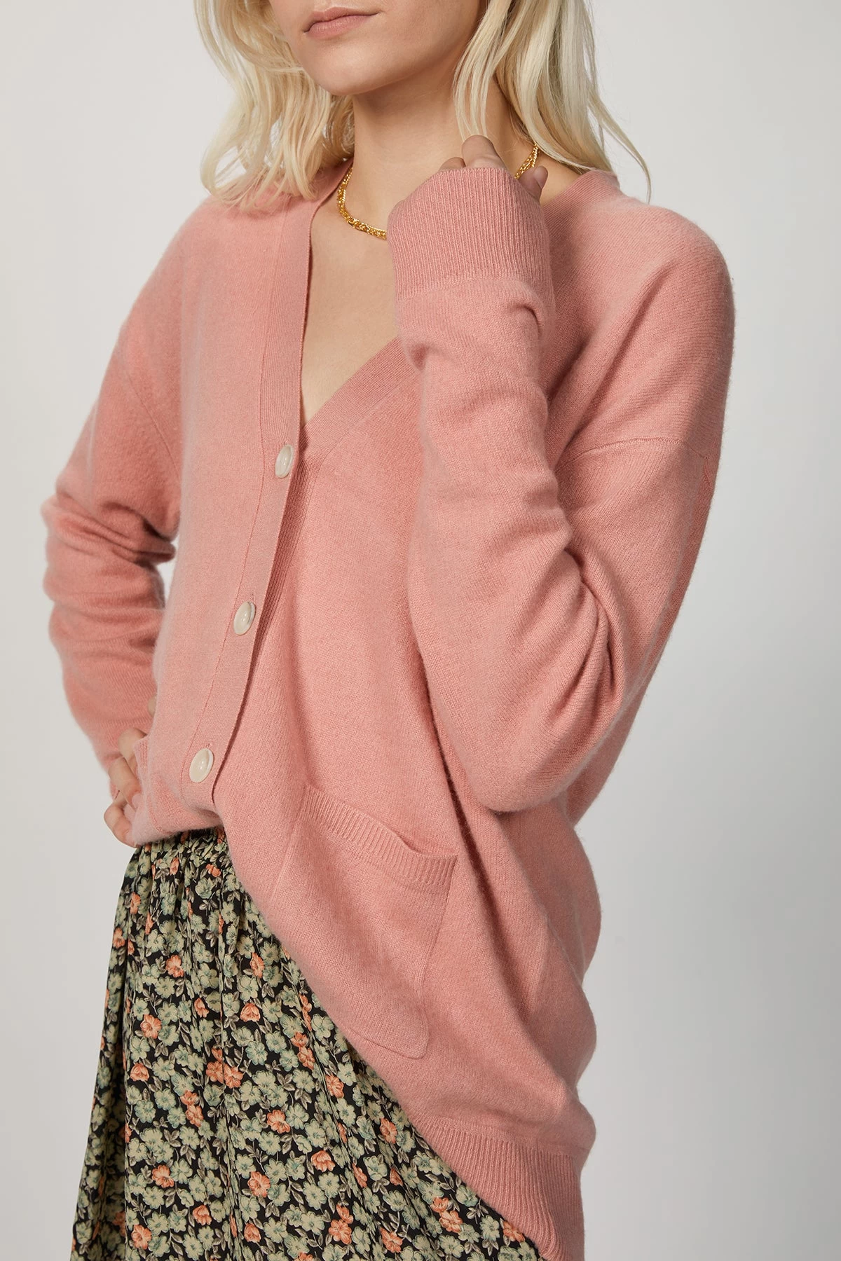 Made of a pink deluxe cashmere with a silky feel, this Boyfriend Cardigan features a longline button up design with front patch pockets and a ribbed trim. Pair yours with the label’s Brushed Joggers for an ultimate luxe lounge look.