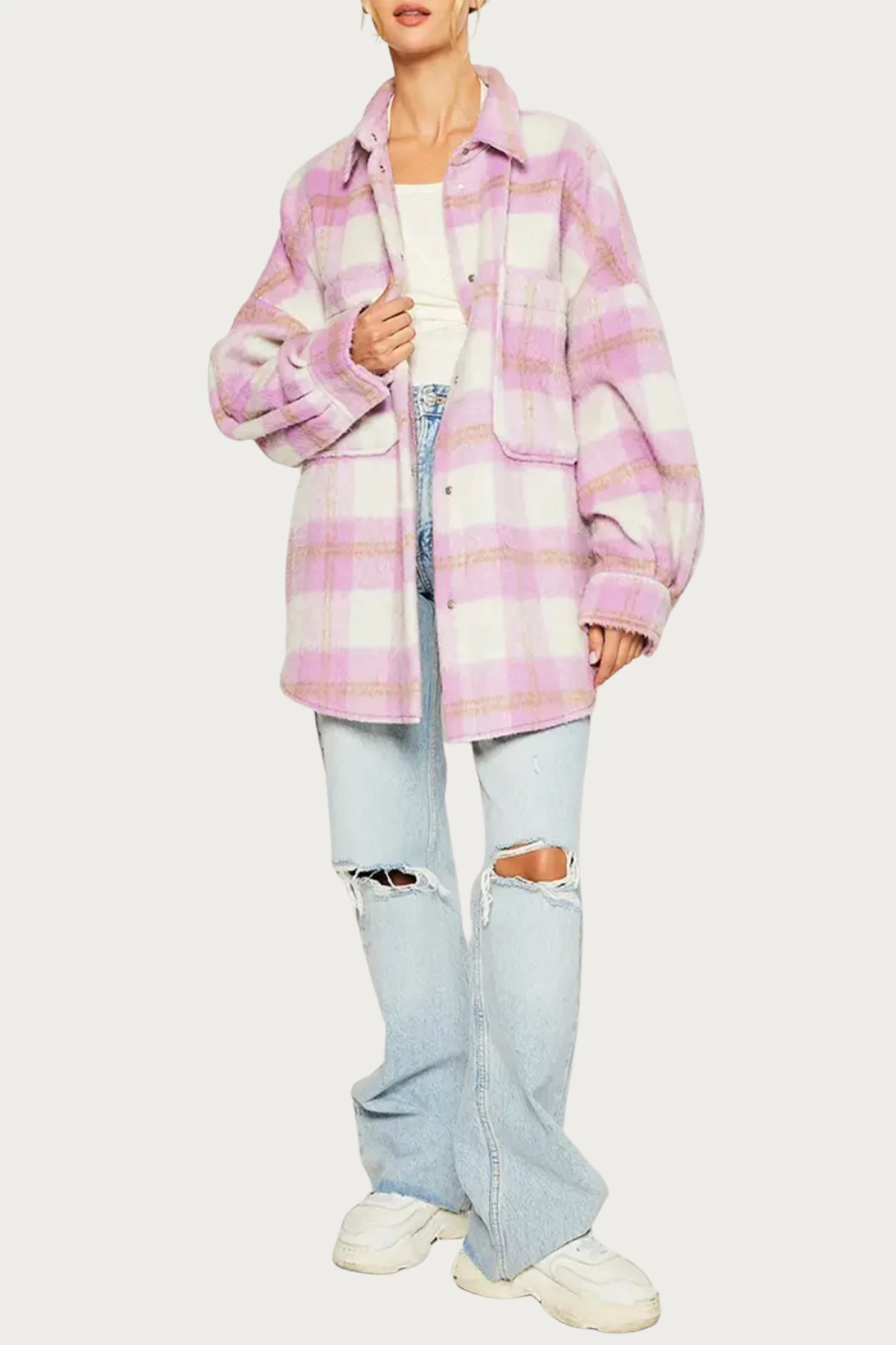 Pretty Garbage’s checked shirt-jacket is an easy throw-on-and-go style. Cut for a loose fit so you can comfortably wear a couple of layers underneath, it’s made from medium-weight brushed fabric patterned with pink and cream checks. Switch between stying yours open and fully buttoned to achieve two different silhouettes.