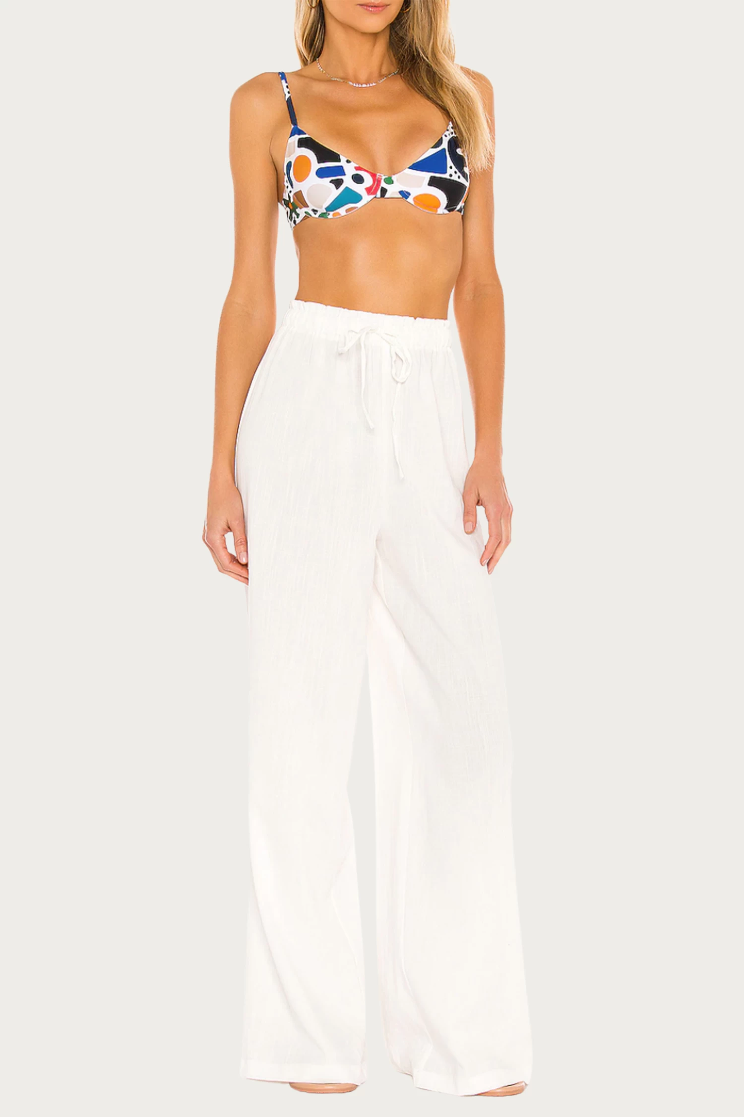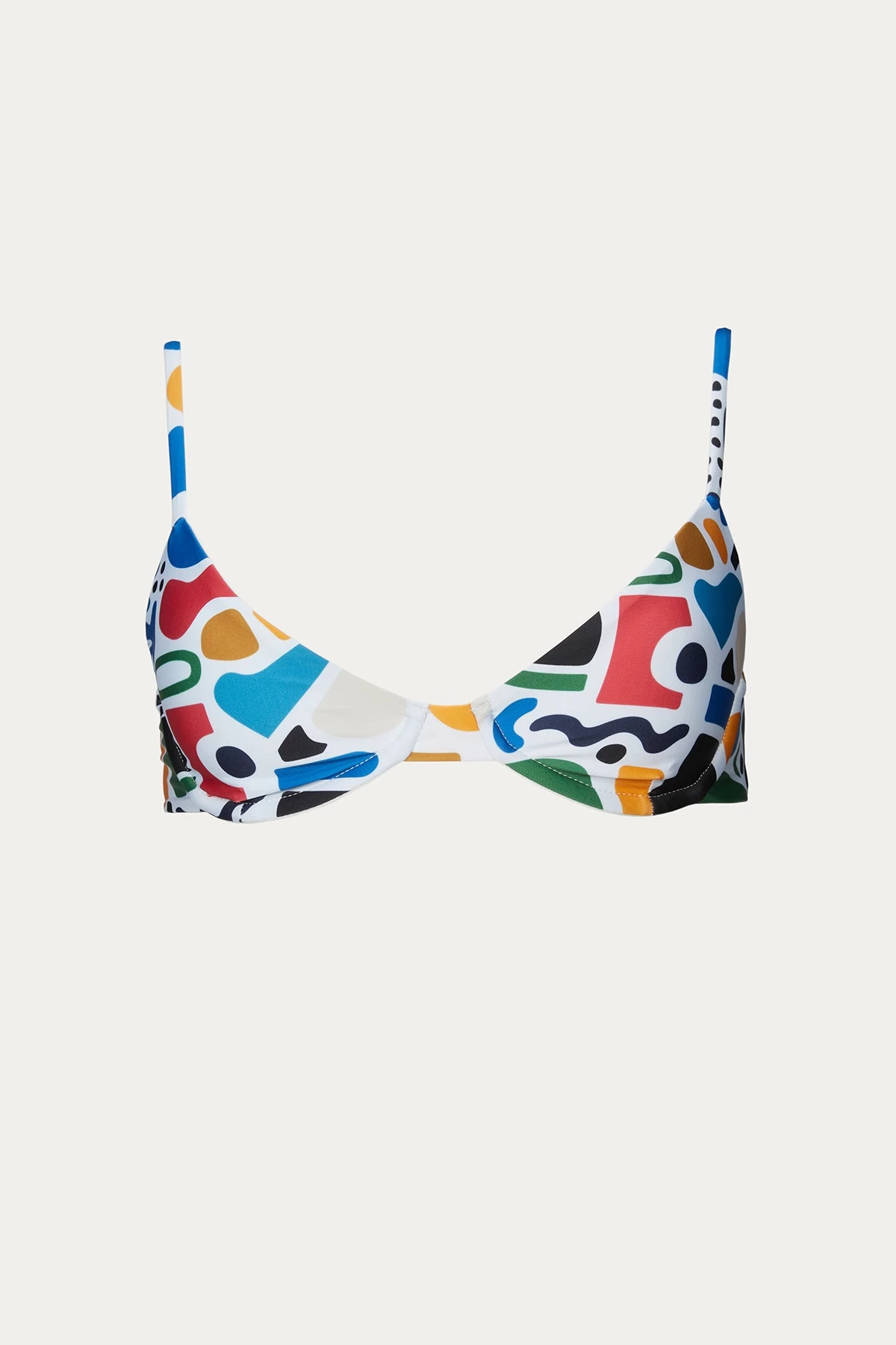 Inspired by the ’90s, this ‘Camilla’ bikini top is made from stretch fabric with abstract shapes and provides full coverage. It has supportive underwired cups and slim, adjustable straps. Pair with the matching ‘Chloe’ bottom to complete the bikini.