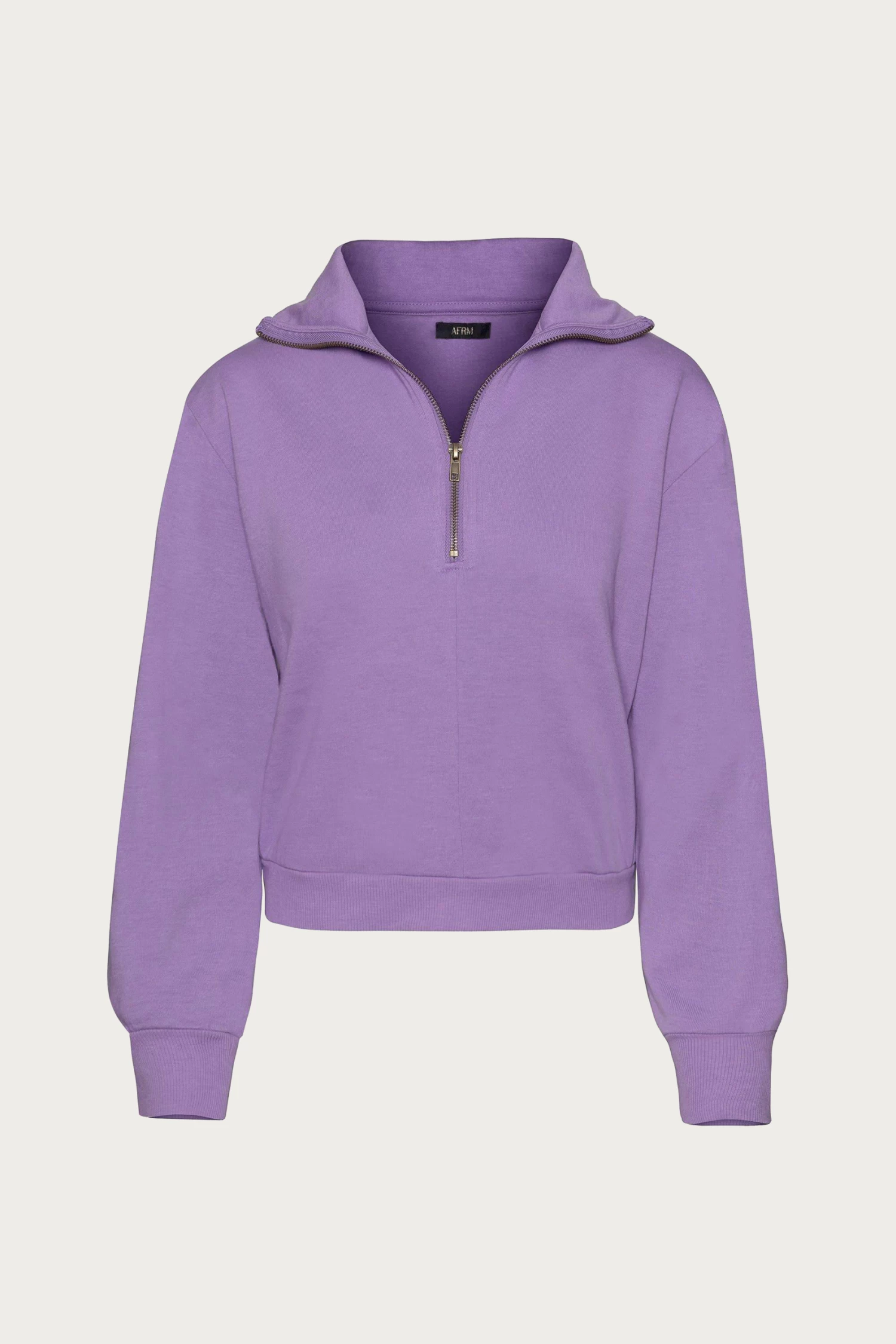 When the time comes to refresh your casualwear collection, turn to elevated basics from AFRM, like this ‘Canon’ pullover. The lilac design has been made from a soft cotton blend and has a relaxed fit to ensure optimal comfort. Close the half-zip fastening when the weather necessitates a cozy funnel neck.