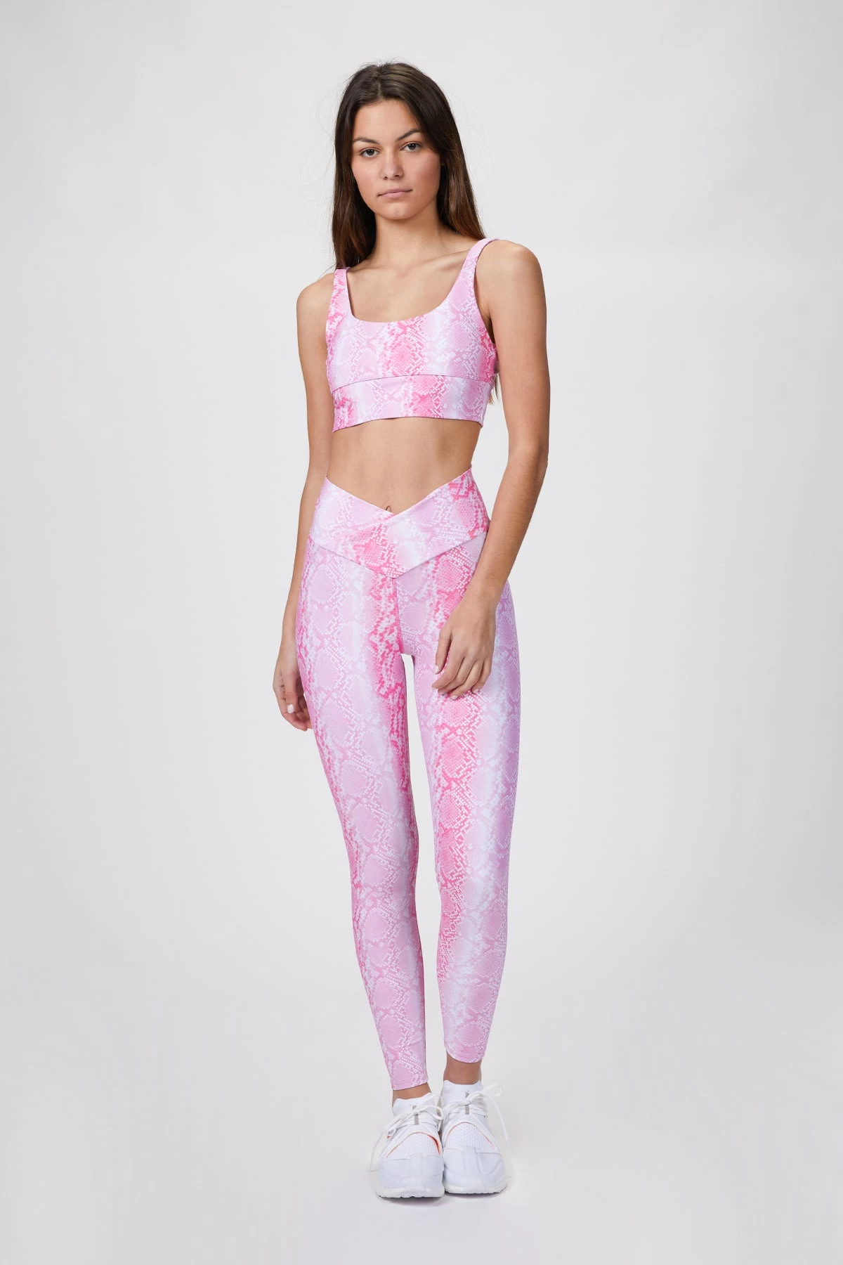 With a wide V-shaped waistband, Beach Riot’s ‘Cara’ leggings are made from stretch fabric for a second-skin fit in a fuchsia snake print. Both cool and functional, this full-length compression legging smooths your silhouette. Wear them with the matching ‘Leah’ top to complete the workout set.