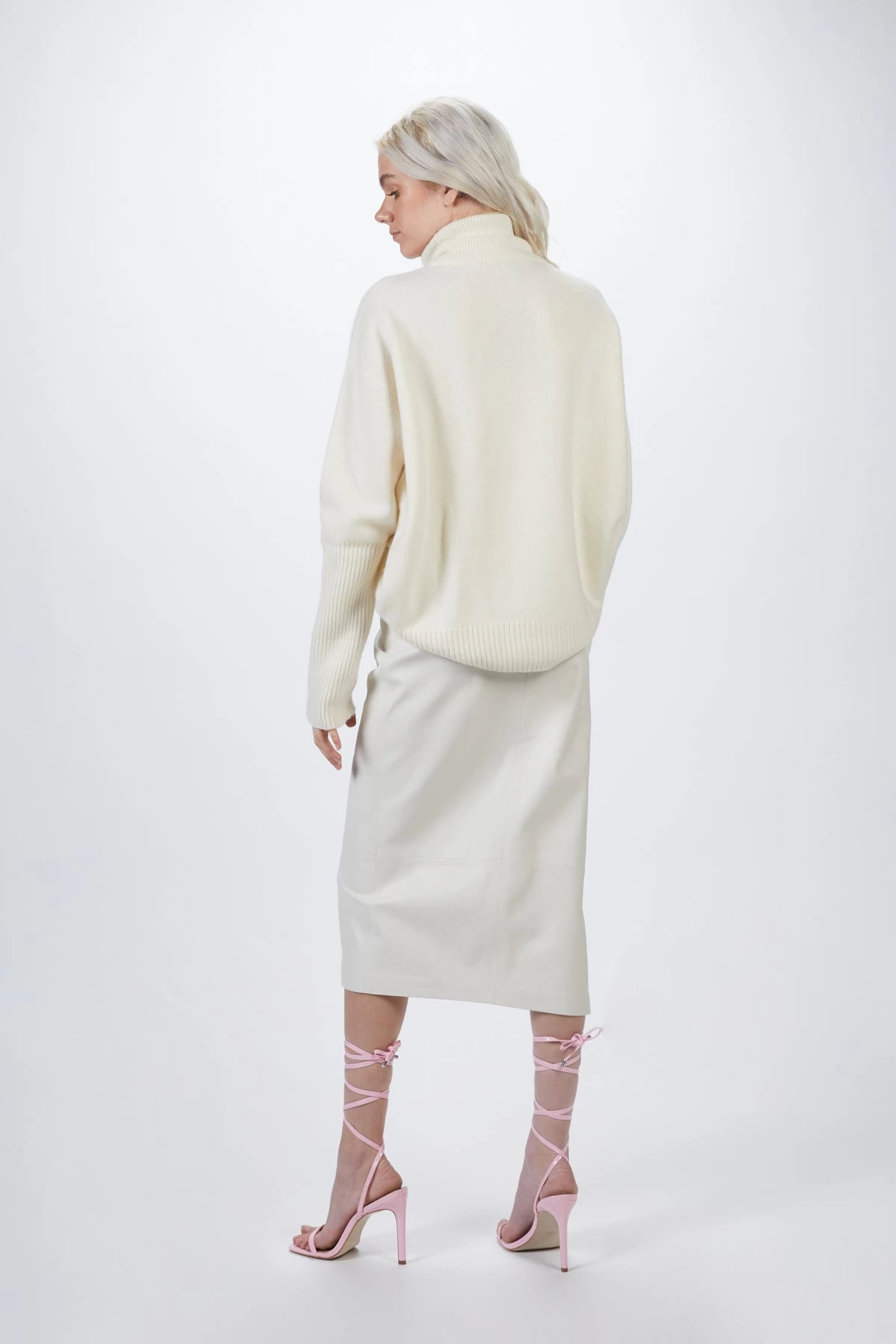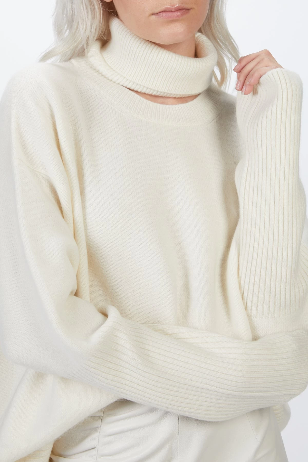 Crafted from a luxurious yarn that is durable and lightweight, you will love draping yourself in the blissful softness of this cashmere turtleneck jumper. The slit neck detail pushes the twisted yarns into exciting new territory and is perfect for dinner parties or drinks with the girls. Featuring a relaxed, one-size fit; pair this jumper with a slim-silhouette bottom for balanced proportions.Â
