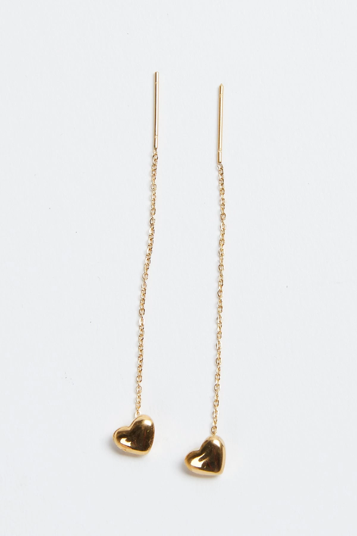 Handcrafted in their New York studio, Melange Blanc’s ‘Daisy’ threader earrings feature a floating heart with a delicate chain drop. They are cast from 18-karat gold-plated metal and can be worn in one or threaded through multiple piercings.Â