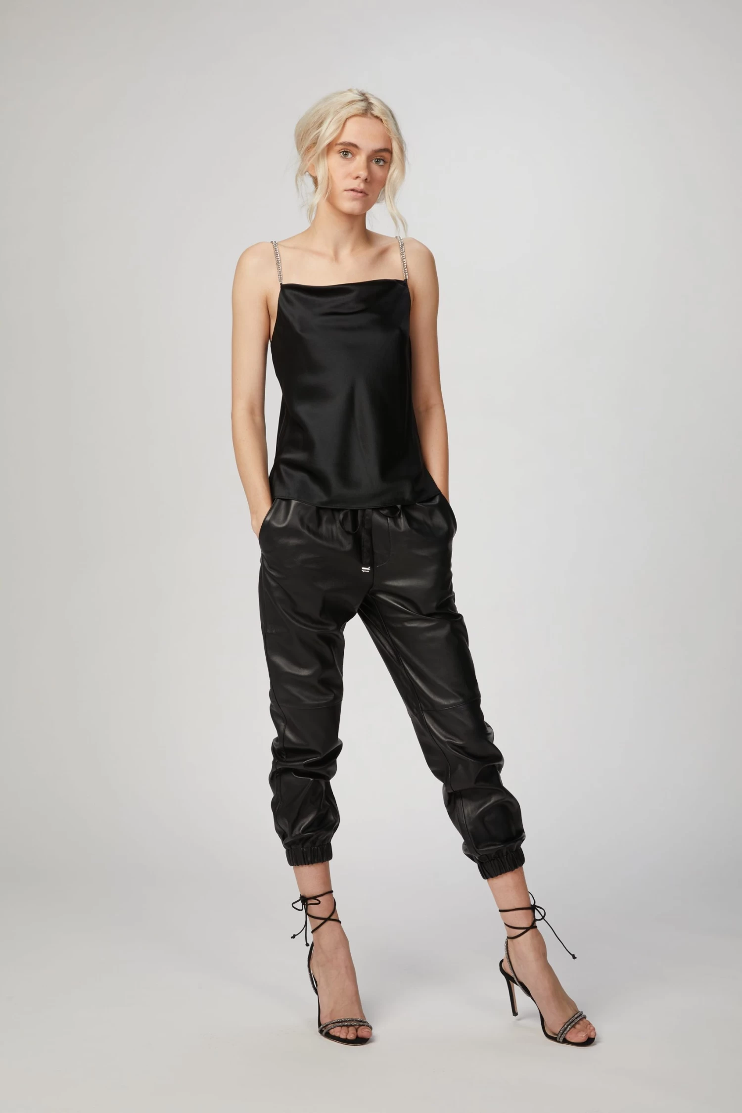 Put your jeans aside and merge the comfort of track pants with the elevated look of leather with these ‘Daytona’ joggers. Having as much versatility as edge, pair them with an oversized hoodie and combat boots or dress up with strappy stiletto sandals. Â