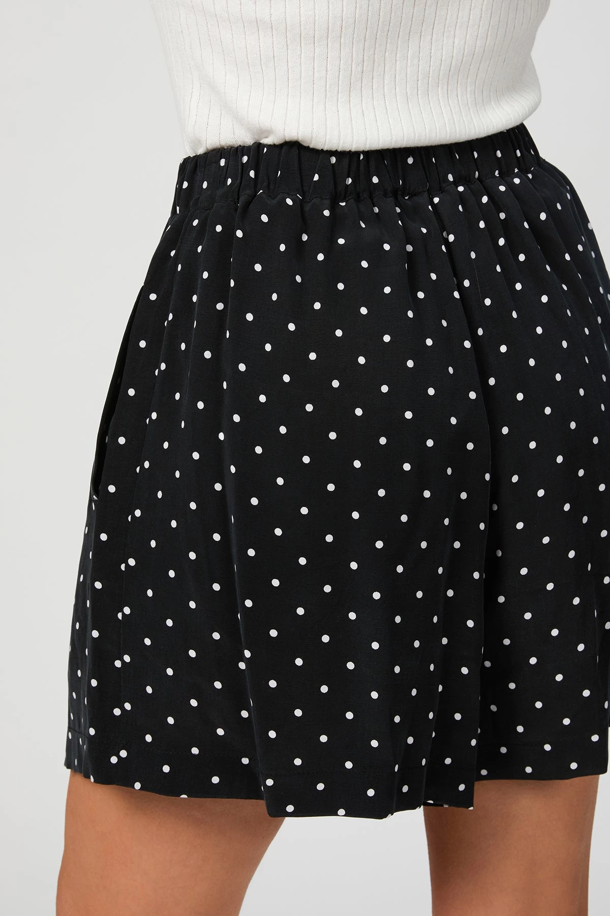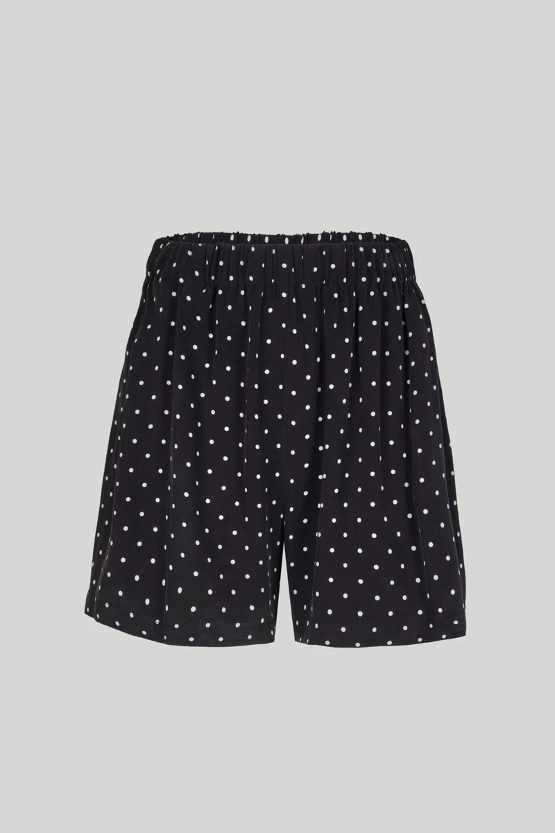 In The Mood For Love’s ‘De La Moussaye’ shorts are cut for a slightly loose fit from vegan silk and printed with timeless polka-dots. They sit high on the elastic waist and are gently gathered down the legs. Style yours with a bodysuit and sandals or pull them on over your trusty bikini.
