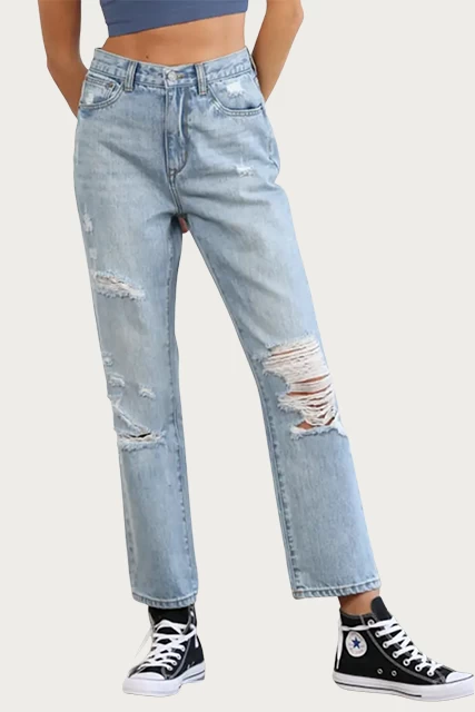 Your new go-to jeans, By Together’s pair are shaped for a slightly relaxed fit. Made from mid-weight denim, they’re distressed and whiskered for an authentic appeal. They sit comfortably high on the waist and have straight legs. Wear yours with all of your favorite tees, tanks and sweaters.