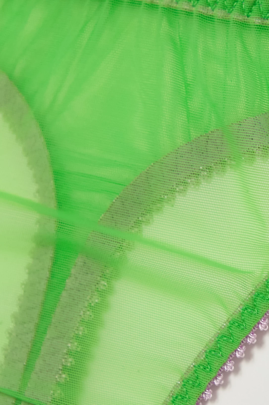 Designed for ultimate comfort and all-day wear, Dora Larsen’s ‘Dolly’ thong is crafted from soft stretch-tulle and is just as functional as it is pretty. In a vibrant green hue and traced with lilac picot trim, it is lined at the base for a breathable fit.