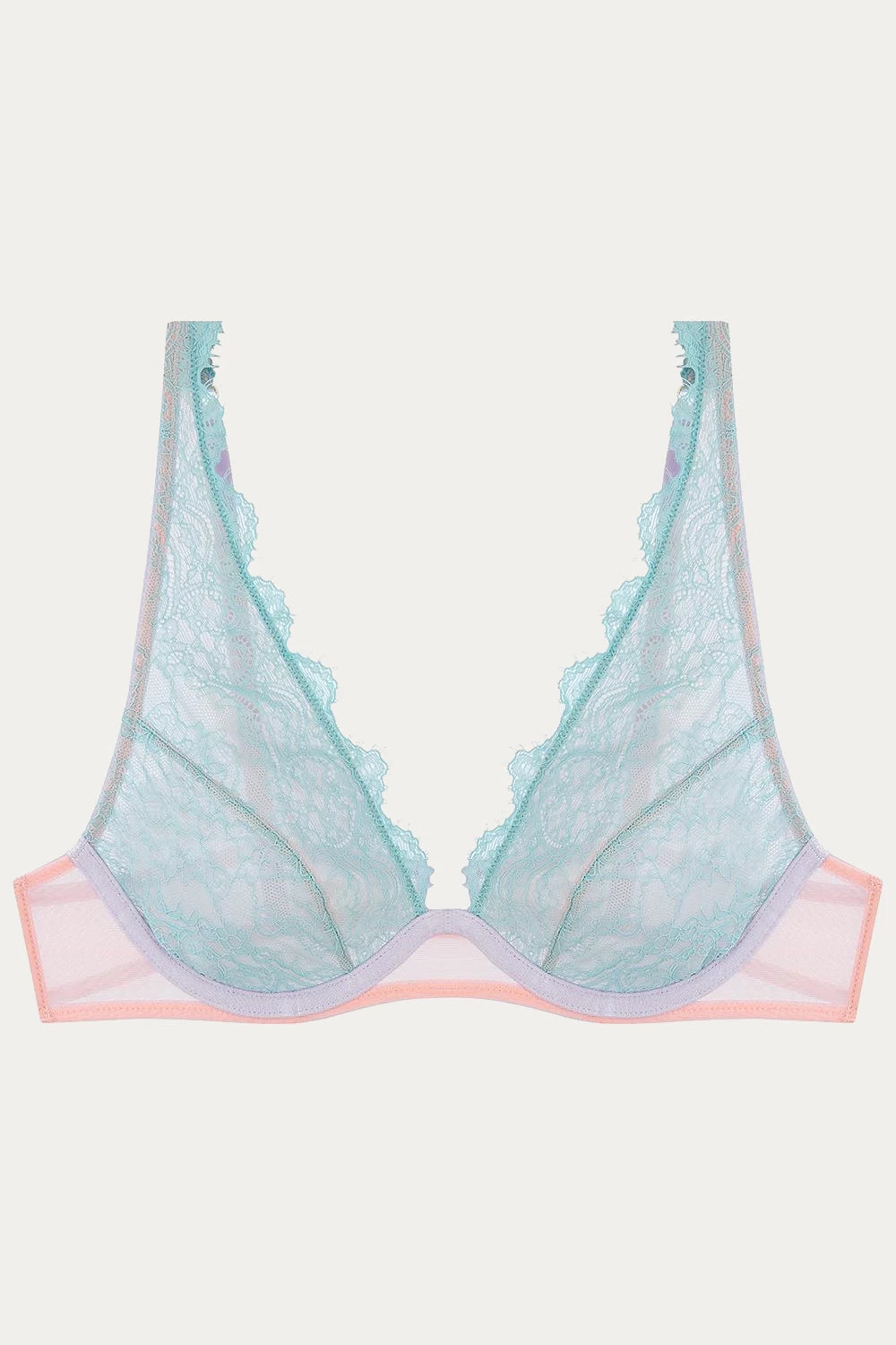 In a lifting high apex cut, the Iris bra is made from stretch-lace and has short-underwired cups for ample lift. Free from padding, this design accentuates natural shape without the compromise of support. The plunging-neckline design offers a flattering fit.