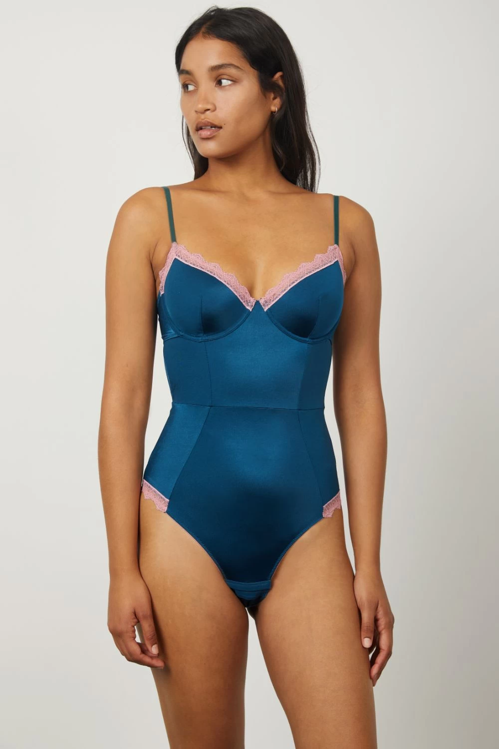 From bedroom to wine bar, this all-in-one Ivy Underwired Body makes for the perfect base layer. Fitted at the cups and waist, the silky microfiber bodysuit provides a smooth, natural silhouette. Layer under a blazer or tonal cardigan, or showcase it solo in the bedroom.