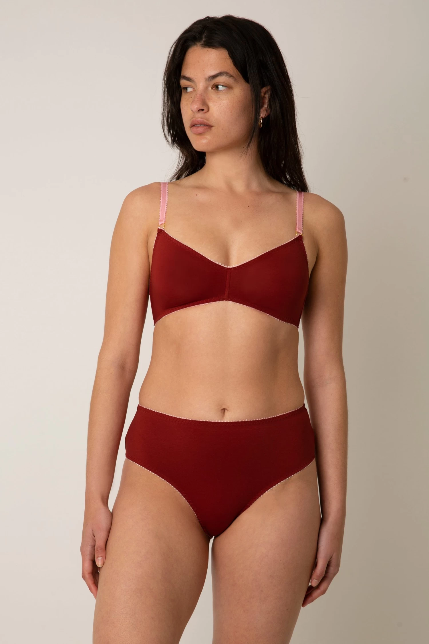 This item is designed to be worn as a matching set – pair yours with the ‘Rosalie Organic Cotton Thong’ or the ‘Rosalie Organic Cotton High Waist Knicker’