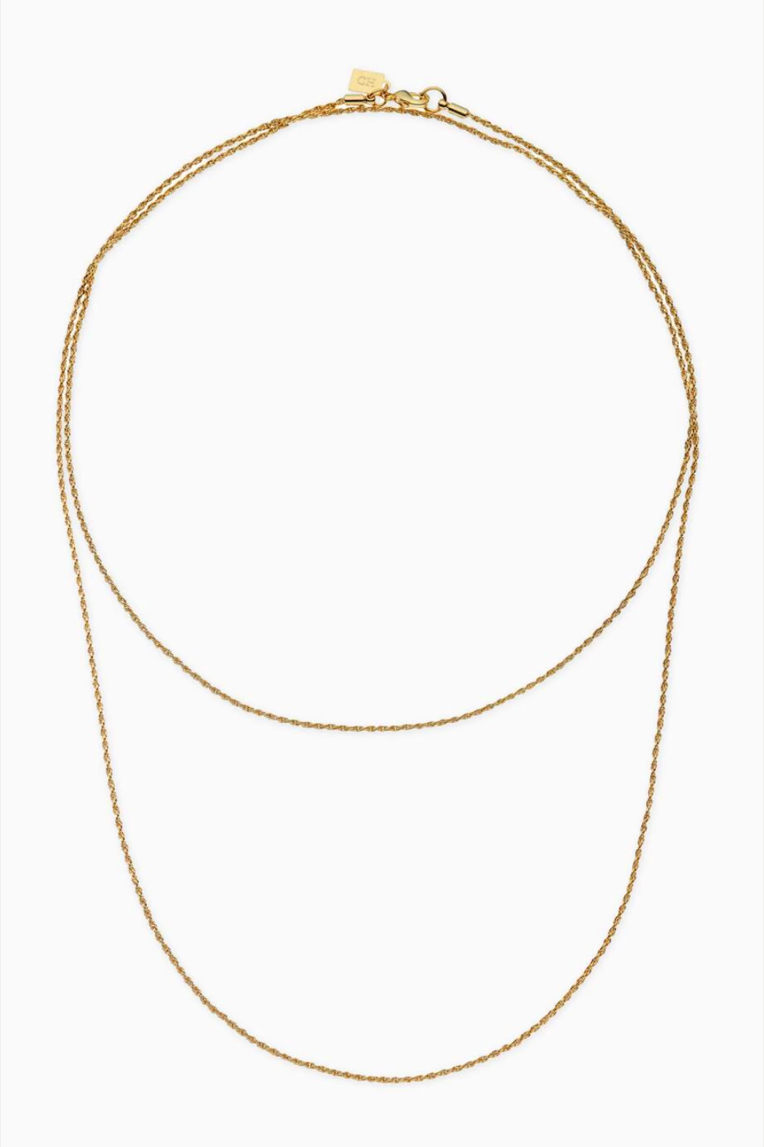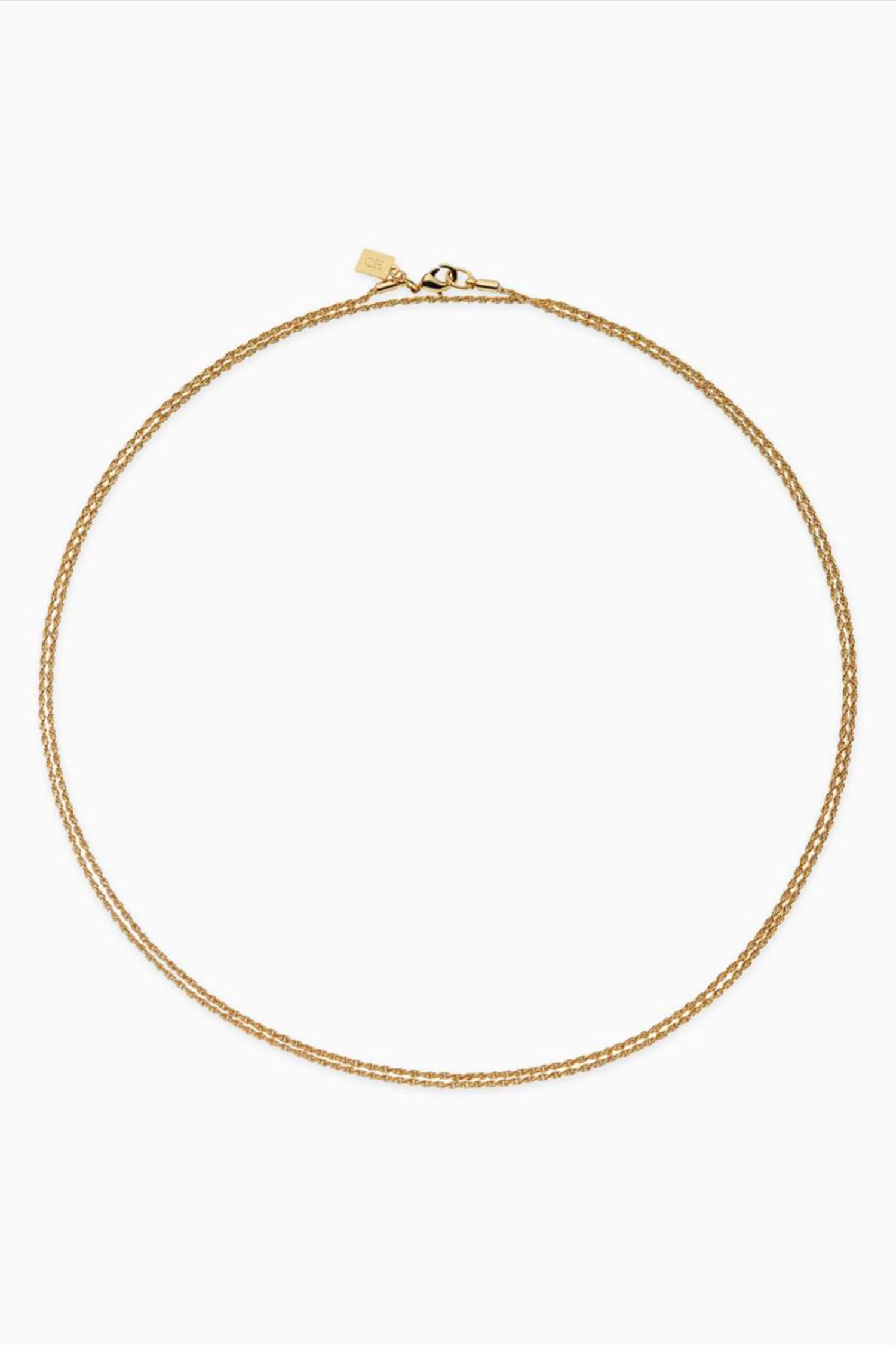 Crystal Haze Jewelry’s ‘Double Rope’ chain necklace can be worn multiple ways – try looping it to create a layered effect or wear it as a long, single strand. It is cast from 18-karat gold-plated brass with a lobster claw fastening.Â