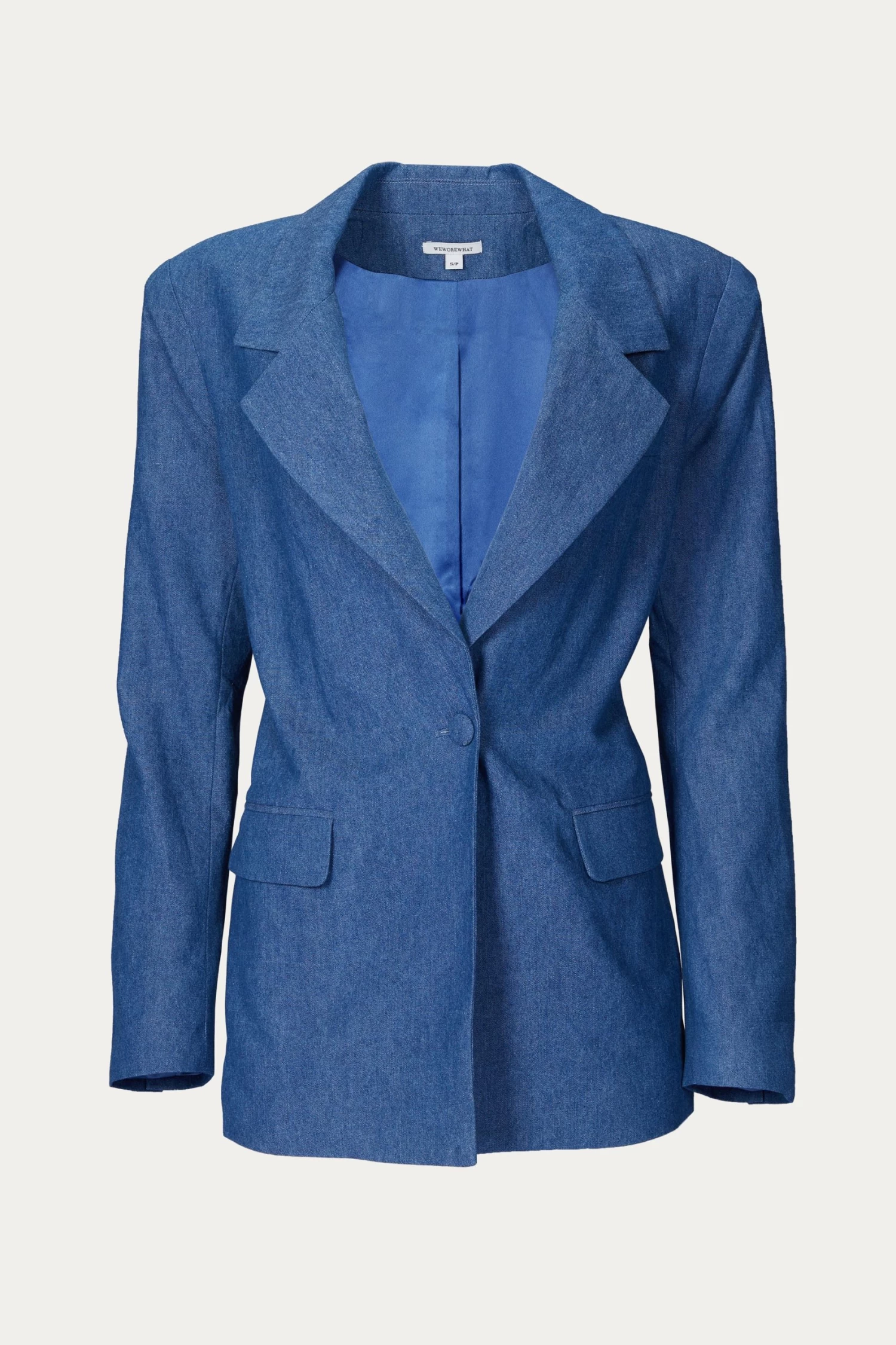 The feminine tailored Downtown Indigo Blazer is made from a rich midnight blue denim and has a relaxed oversized fit. Exaggerated shoulder pads and a wide peak lapel create a figure flattering silhouette. Pair with your favorite fitted trousers or throw over a mini dress for a night out. Fully lined.