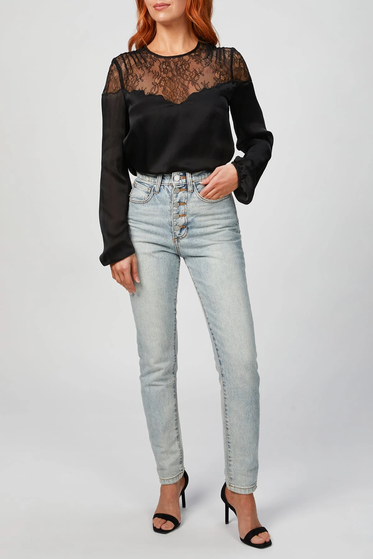 Cami NYC’s ‘Fern’ blouse is made from lustrous silk-charmeuse that’s been sandwashed for an extra soft handle. It’s detailed with feminine lace paneling. Style yours with a leather skirt and heels.