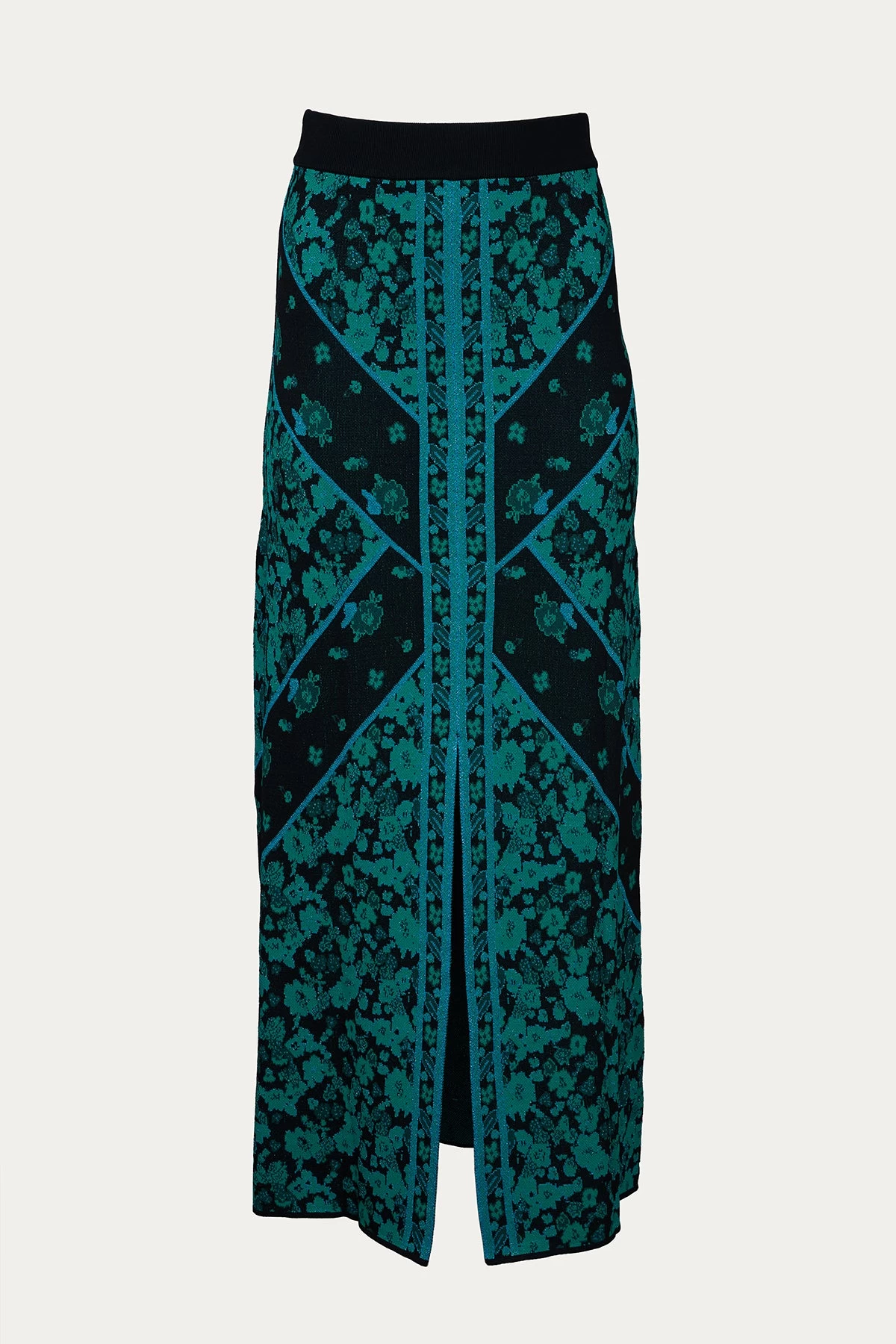 So chic and effortless, Eva Franco’s skirt sits high on the waist and has a mid-length hem. Made from heavyweight knit, the design is adorned with pretty florals and has a hint of metallic threading throughout. Pair yours with a slouchy sweater and boots.