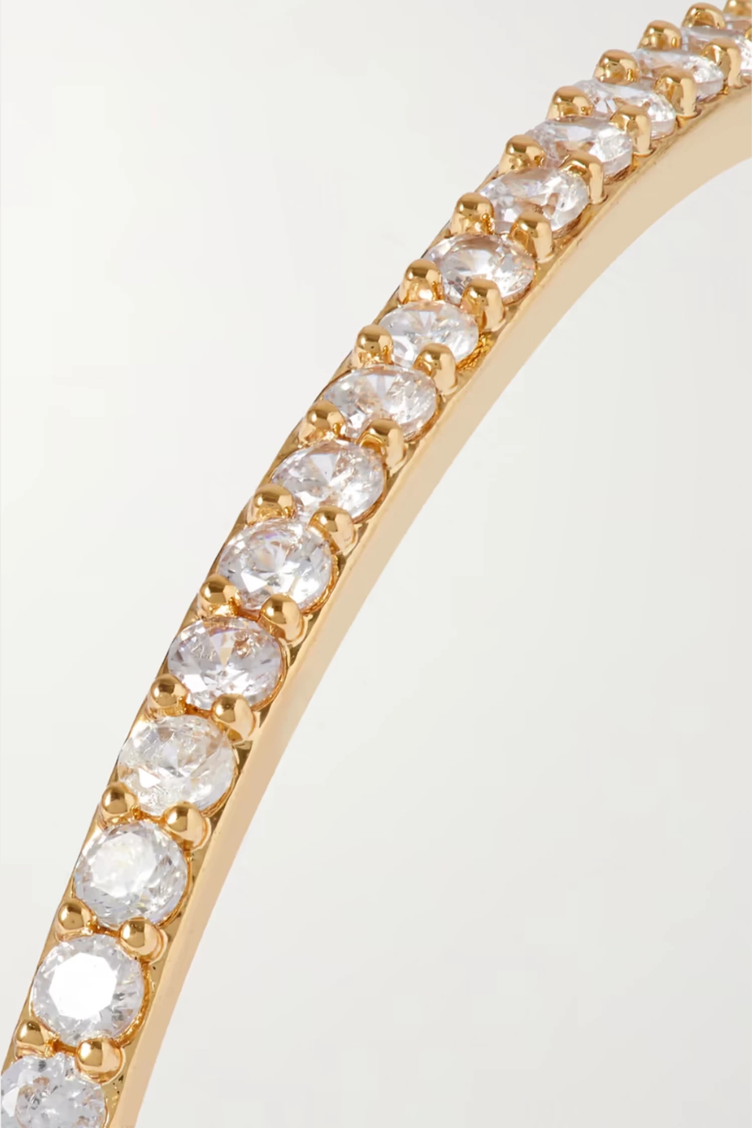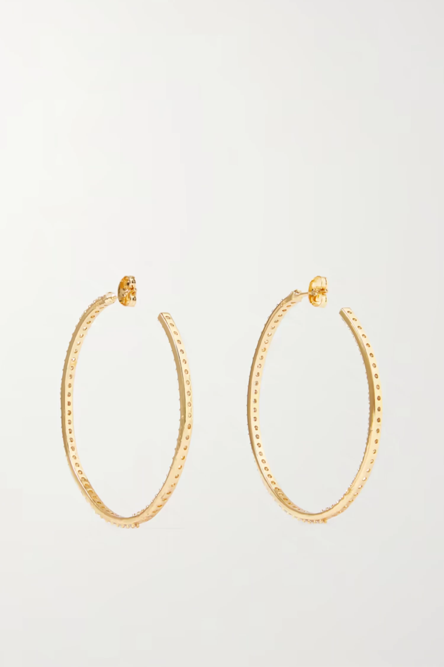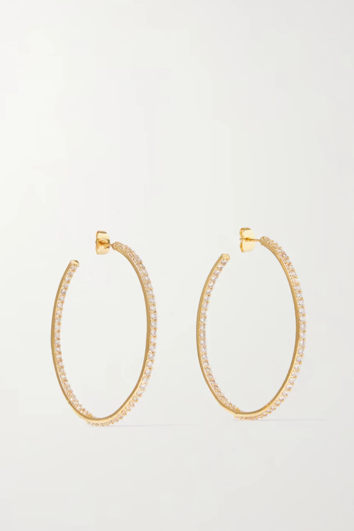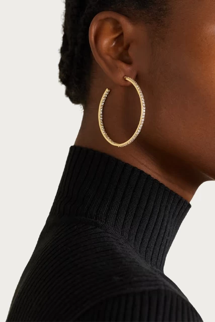 Crystal Haze Jewelry’s ‘From The Block’ hoops nod to the early ’00s. This medium pair is made from gold-plated brass that feels light on the lobes and is set with twinkling cubic zirconias. Wear them alone or stacked with sparkling studs.