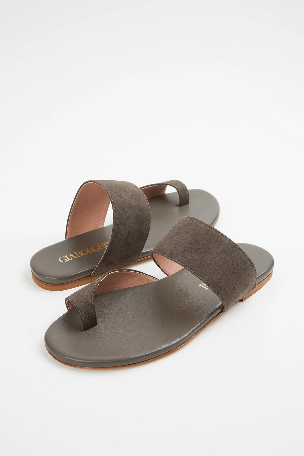 Gia Borghini supports local artisans with the belief in craftsmanship and artisanal excellence. Handmade in Italy, these ‘Zefiro’ slide sandals are crafted from smooth brown suede with a single toe loop. This classic design will work with almost all of your summer wardrobe.Â