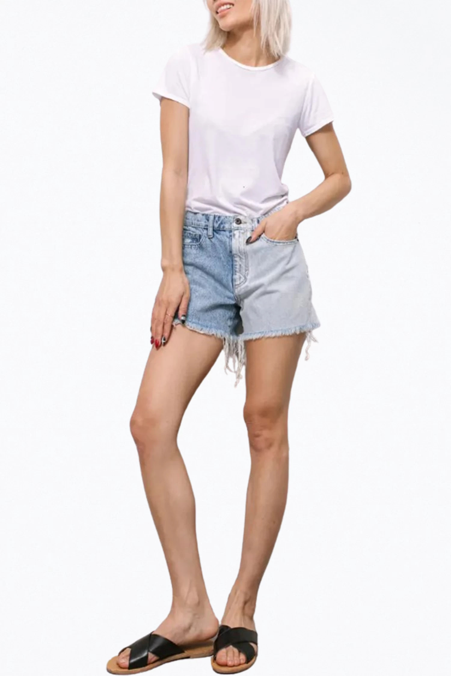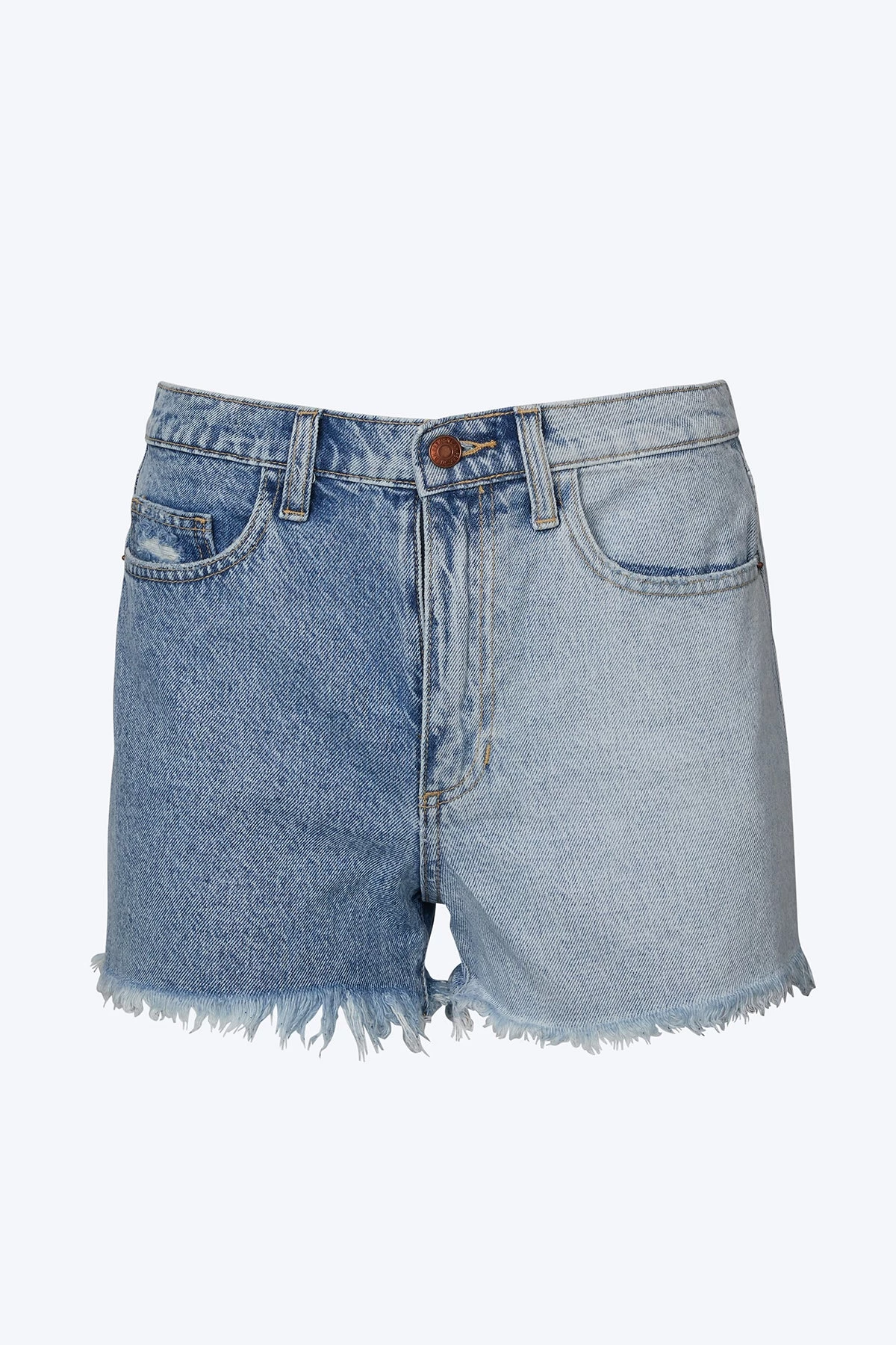 Sneakpeek adds a contemporary twist to the classic denim short with their two-tone pair. Made from lightweight non-stretch denim, they are cut with relaxed straight-legs and have raw-edge hems. Style yours with sandals in warm temperatures and knee-high boots in the cooler months.