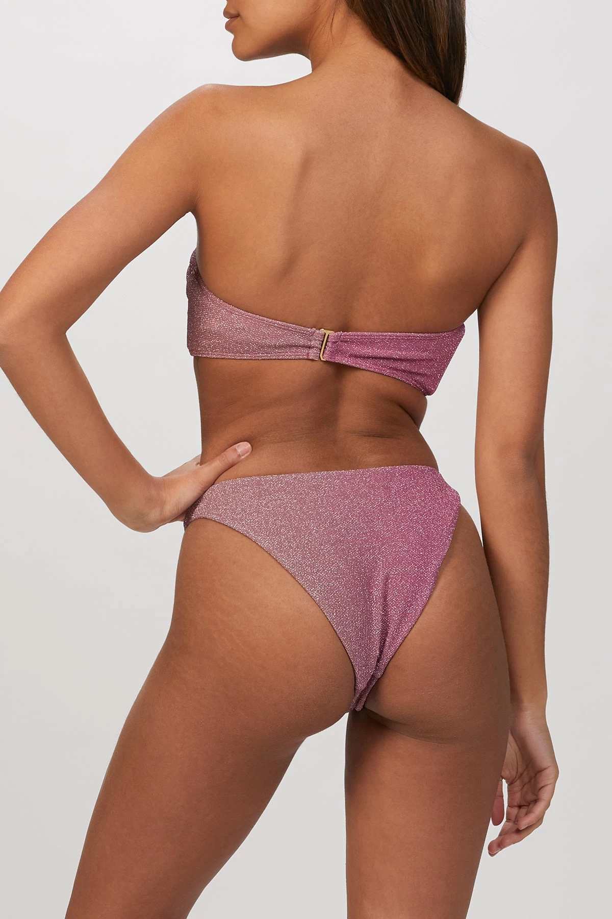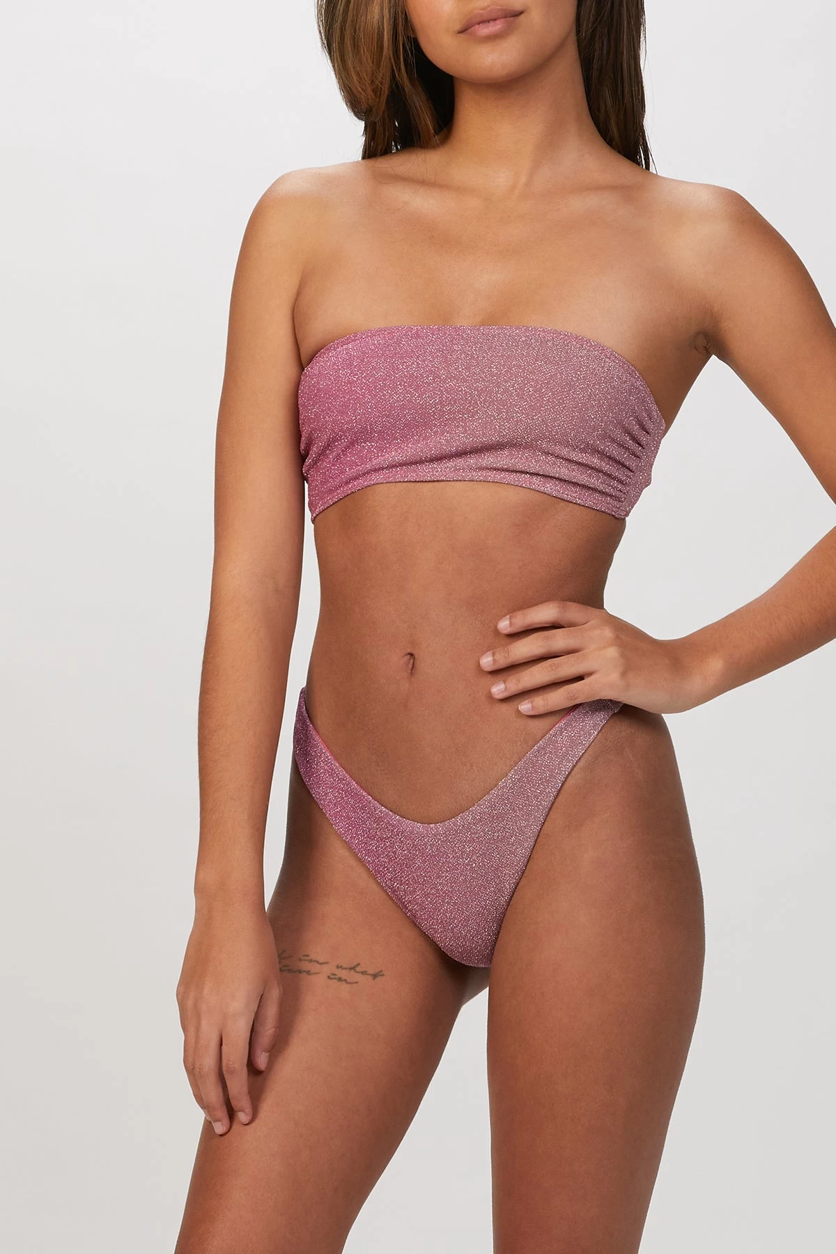 Beach Riot’s ‘Island’ bikini bottoms are made from shimmery stretch fabric that’s easy to complement with gold jewelry or sunglasses. They have a seamless, low-rise shape that provides medium coverage. Wear yours as a set with the matching ‘Kelsey’ top.