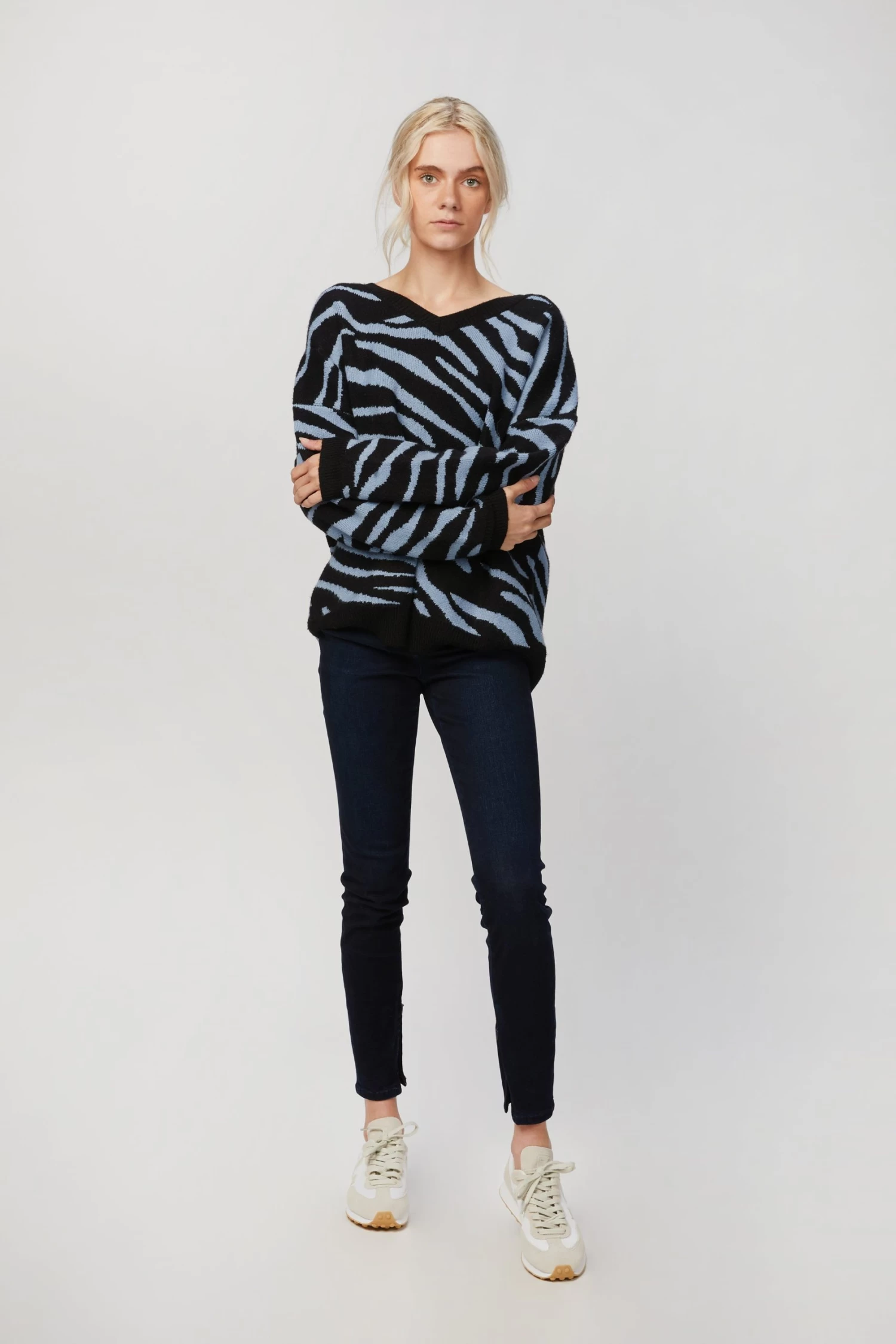Beach Riot’s ‘Joey’ sweater is crafted from a super soft and breathable sweater-knit blend. Made for a slouchy fit, the relaxed silhouette is emphasized by dropped shoulders in a blue-hued zebra print. Pair it with vintage denim for a laid-back look.