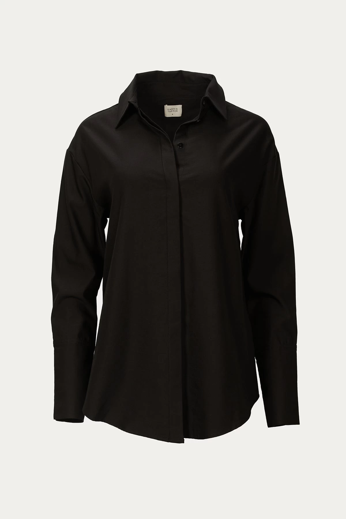 Quality fabrics and impeccable silhouettes lay the foundation for Harris Tapper’s designs, and this ‘Kate’ shirt proves just that. Crafted from soft yet structured fabric, it has a slightly loose fit with a neat collar and large cuffs. Wear yours tucked into a midi skirt or left open over a tank.