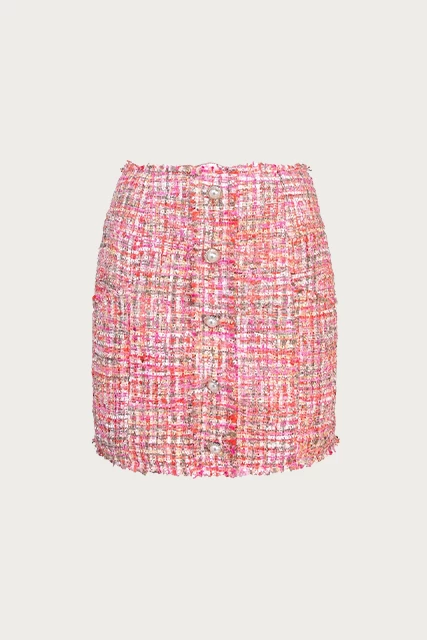 LAUREN BUTTON-EMBELLISHED TWEED MINI SKIRT