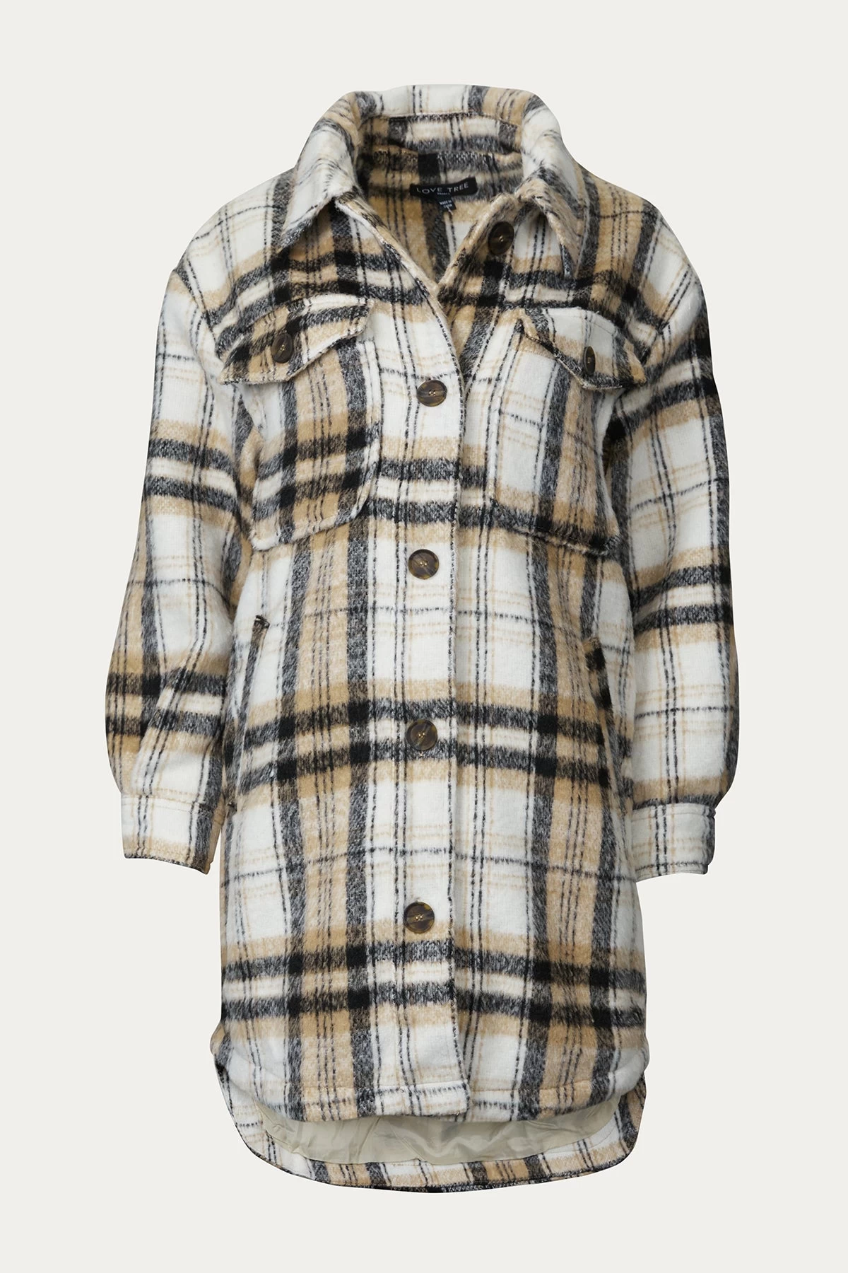 Urban Daizy’s jacket is in line with the season’s popular ‘shackets’ – the longer length ensures even more warmth. Finished with a fuzzy handle, it features buttoned chest pockets and a roomy fit that ensures smooth layering over thick sweaters.Â