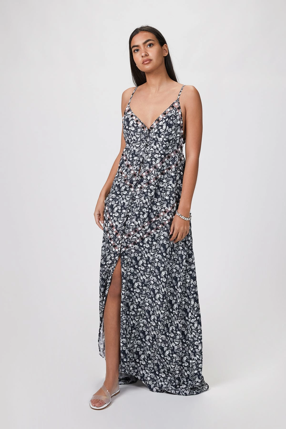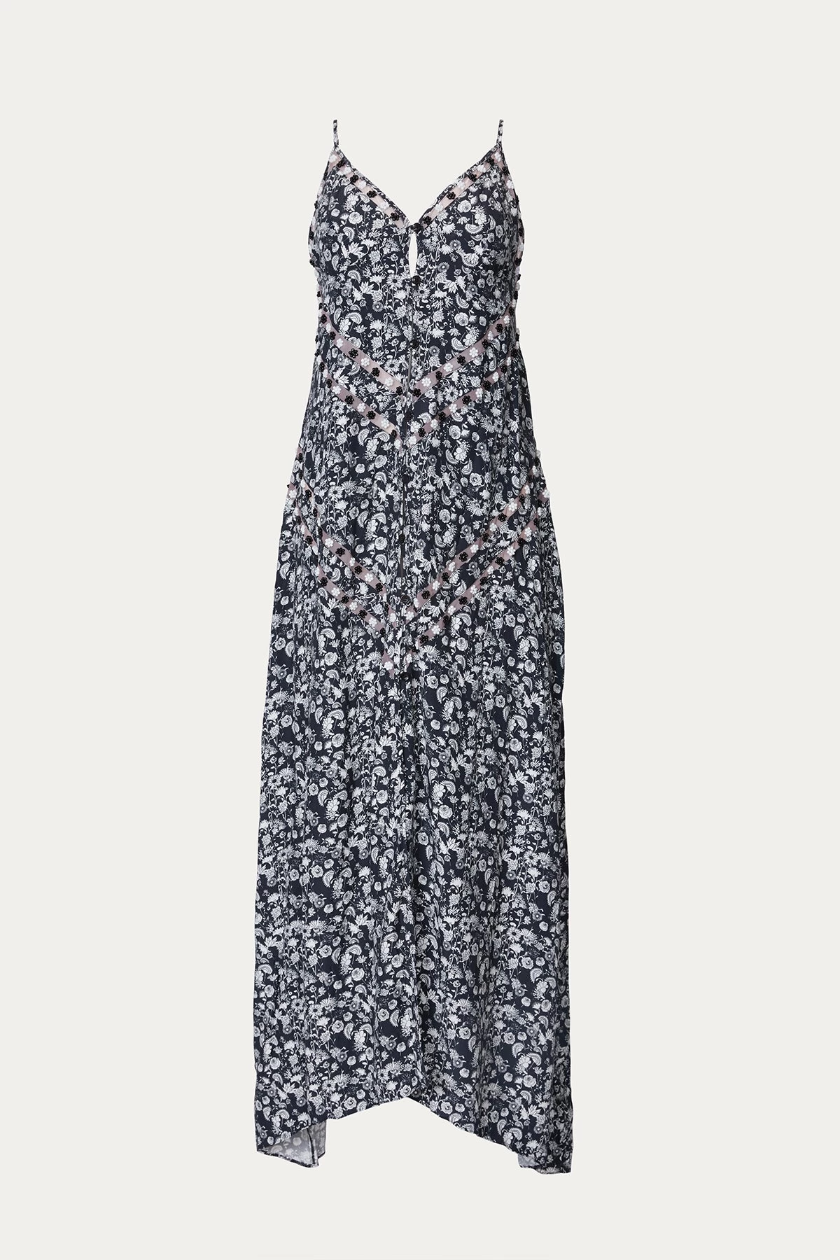 Tap into the label’s effortless Brazilian cool with this long floral dress that’s everything you need to comfortably wrap up a day at the beach or pool. Breathable, light and smooth to the touch, the viscose material will whisk moisture and heat away – keeping you cool and comfortable in the warm temperatures. The thin panels of mesh and front cutouts detail this beautifully draping maxi. Throw it on for seaside lunches.