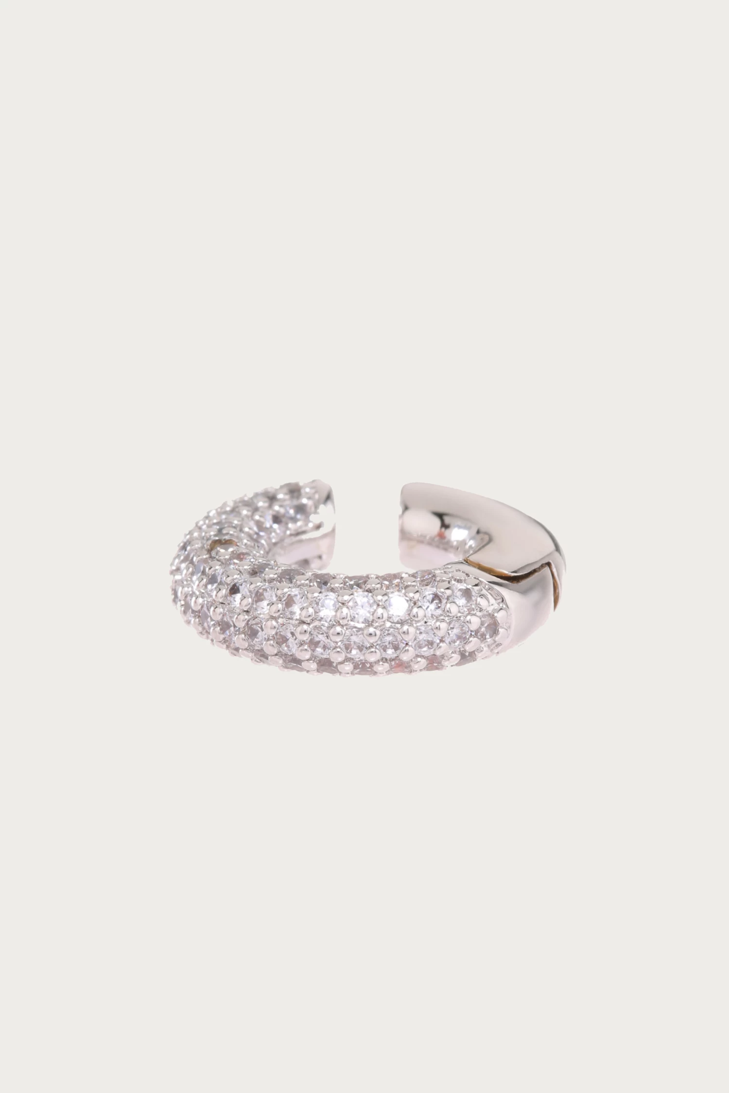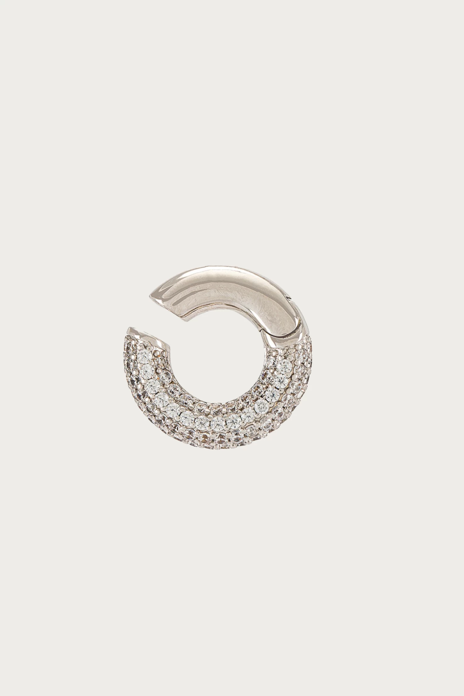 The pavé ‘Amalfi’ ear cuff is a silver-plated ear cuff inset with rows of pavé crystals. It contains a bendable hinge for comfort and easy removal with no need to commit to a new piercing. Sold as an individual ear cuff.