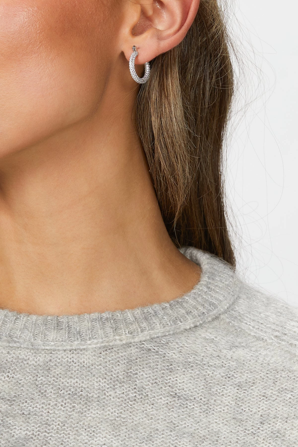 Luv AJ’s pavé baby skinny ‘Almalfi’ hoops are made from silver-plated brass and are lined with crystals that shimmer in the light. They are the perfect size for everyday wear and can be layered with other styles from the label. Sold as a pair.