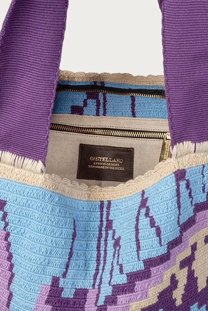 Known for their beautiful patterns and colors, Castellano’s products are all handmade by Wayuu artisans in the La Guajira peninsula in northern Colombia to celebrate tribes that are part of their history and ethnic origin. The ‘Maleiwa’ tote has been meticulously woven to a slouchy silhouette with comfortable top handles for easy carrying.