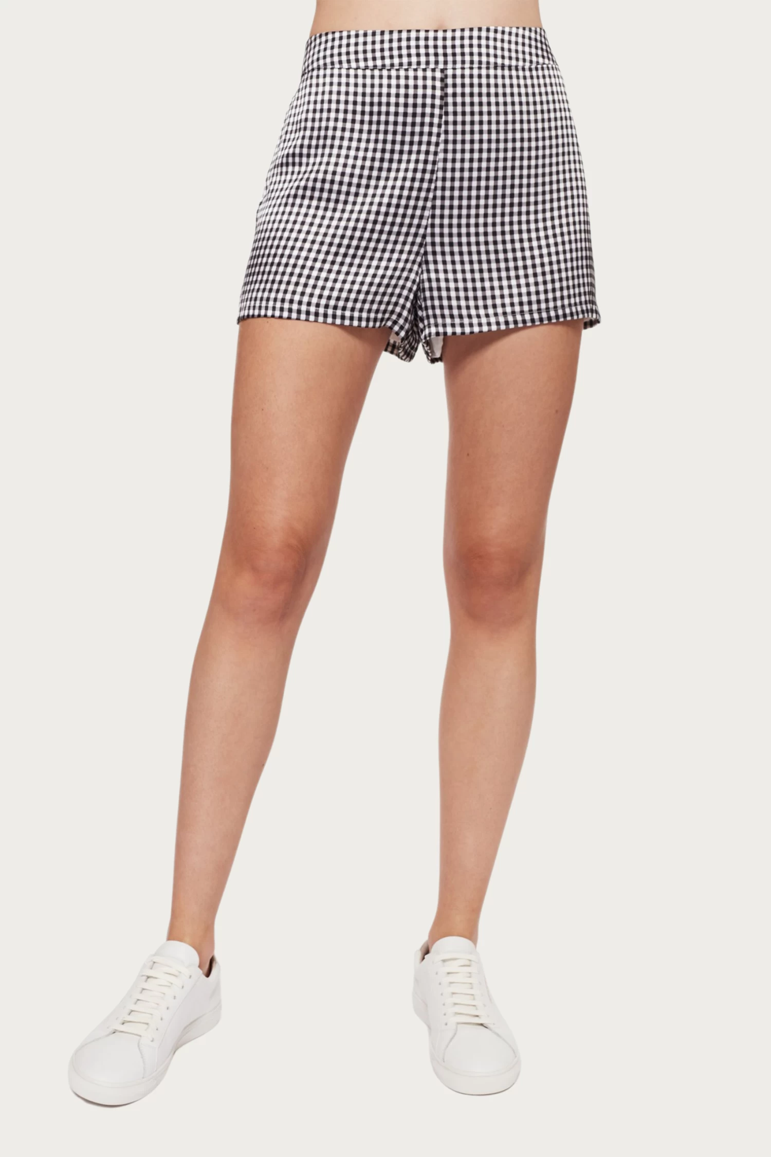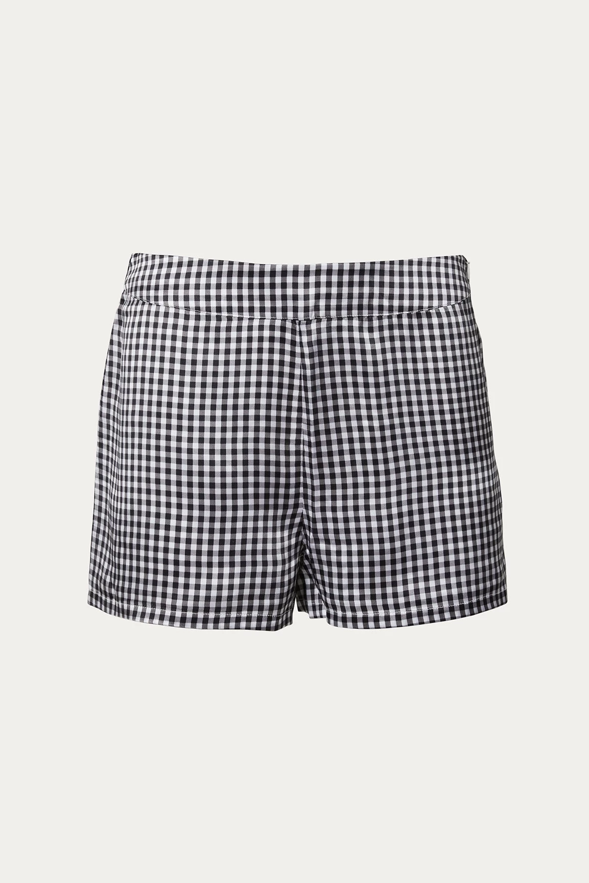 Cami NYC’s ‘Matilda’ shorts are made from silk charmeuse with a black and white mini gingham pattern. They have a high waist with elasticated sides for comfort and fit and are fully lined. Wear yours with a camisole from the label and slides.Â