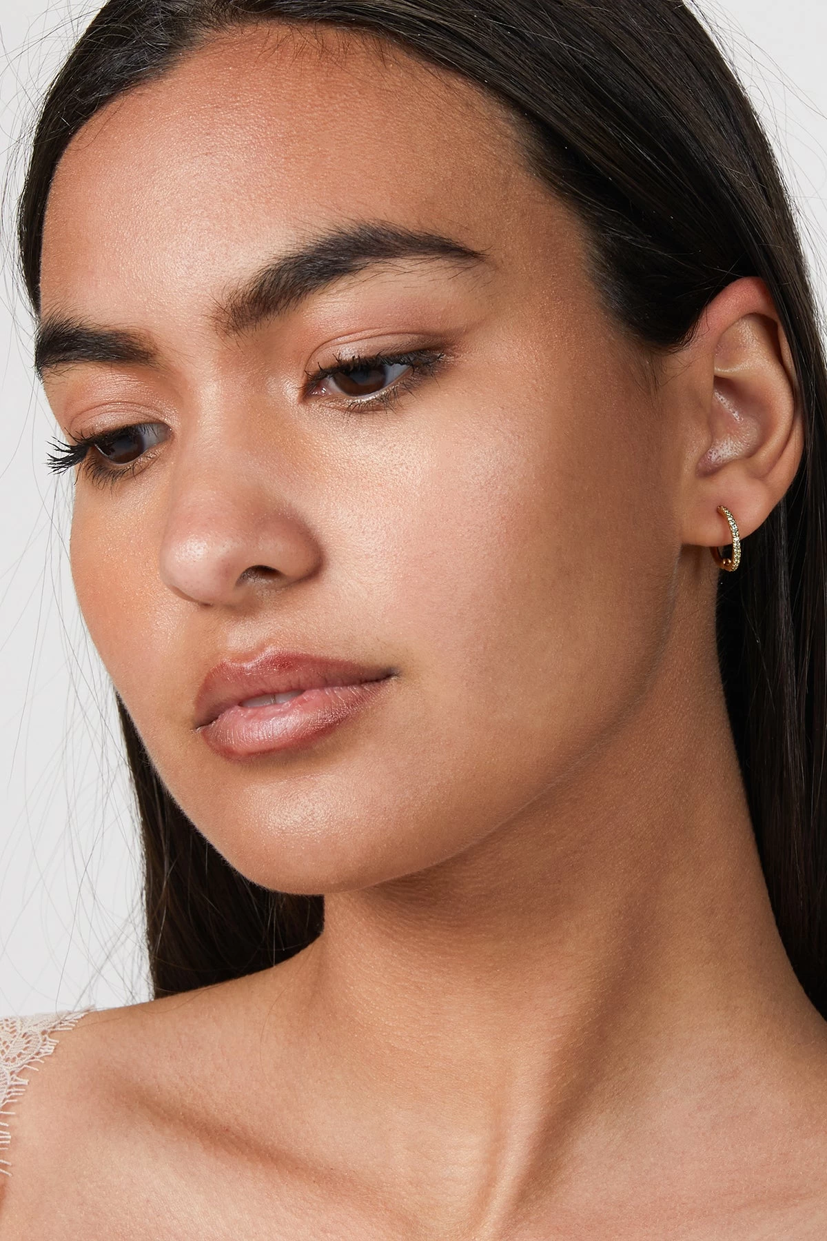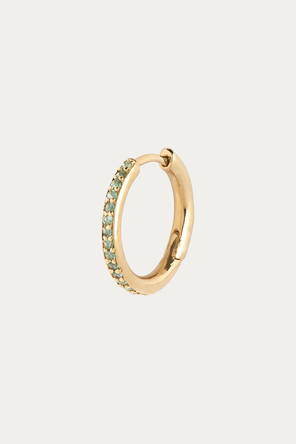 Soft-toned crystals line this delicately crafted huggie hoop. Â Try this huggie alongside graduated-sized huggies up the ear with the Globo Violet Huggie and the Rainbow Huggie.