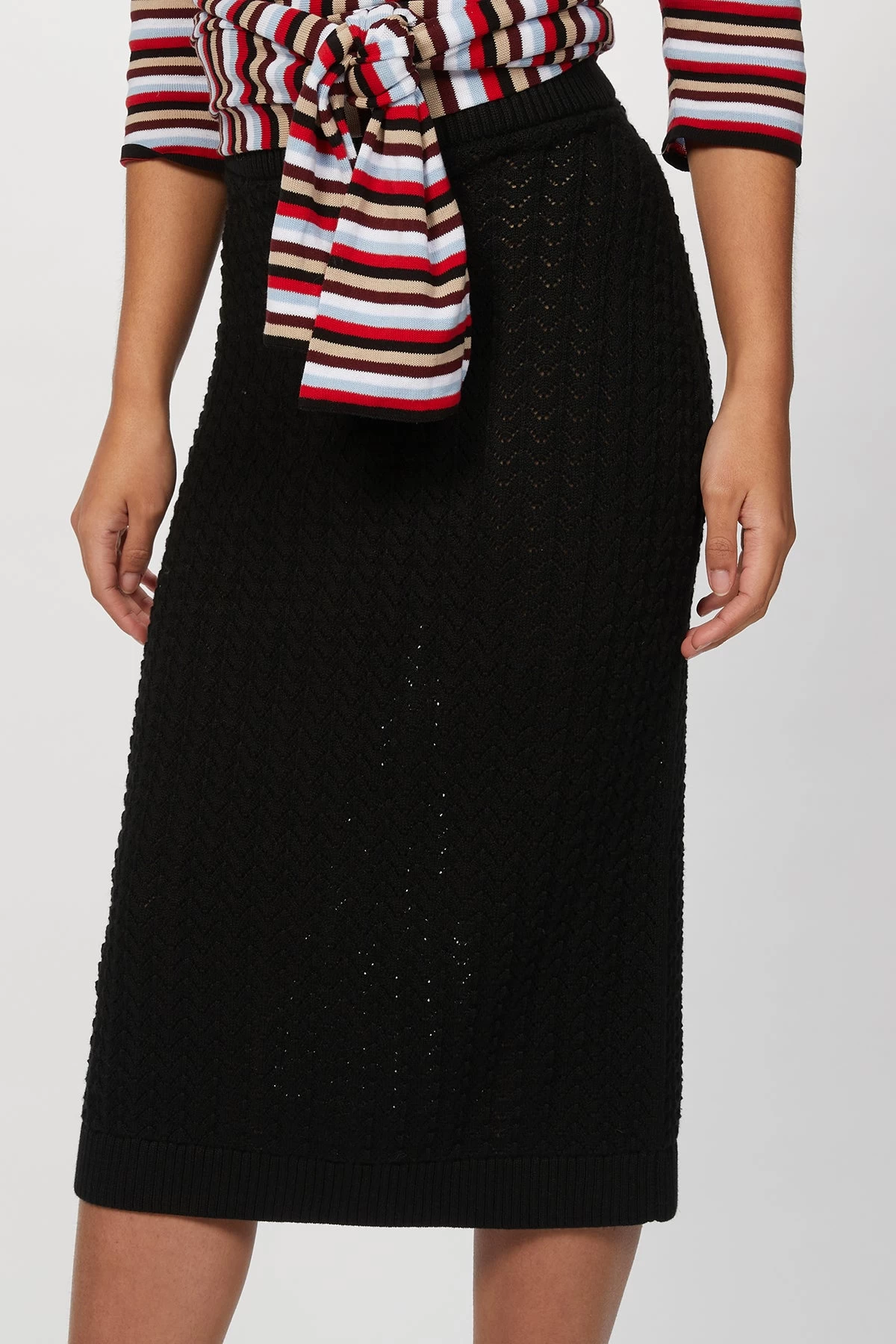 Made from figure-hugging open knit in Peru, this midi skirt has been handcrafted from lightweight cotton for the label’s Spring ’21 collection. We like it best paired with one of the label’s spring sweaters.
