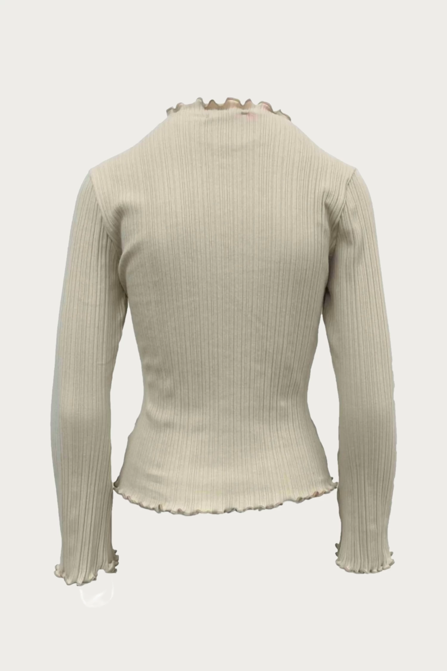 Sadie & Sage’s mock neck top can be worn with pretty much everything – try it alone with jeans on the weekend or tuck it into sharp tailoring. Cut for a slim fit, it’s made from stretch cotton-jersey that feels so soft against the skin and has lettuce trims.