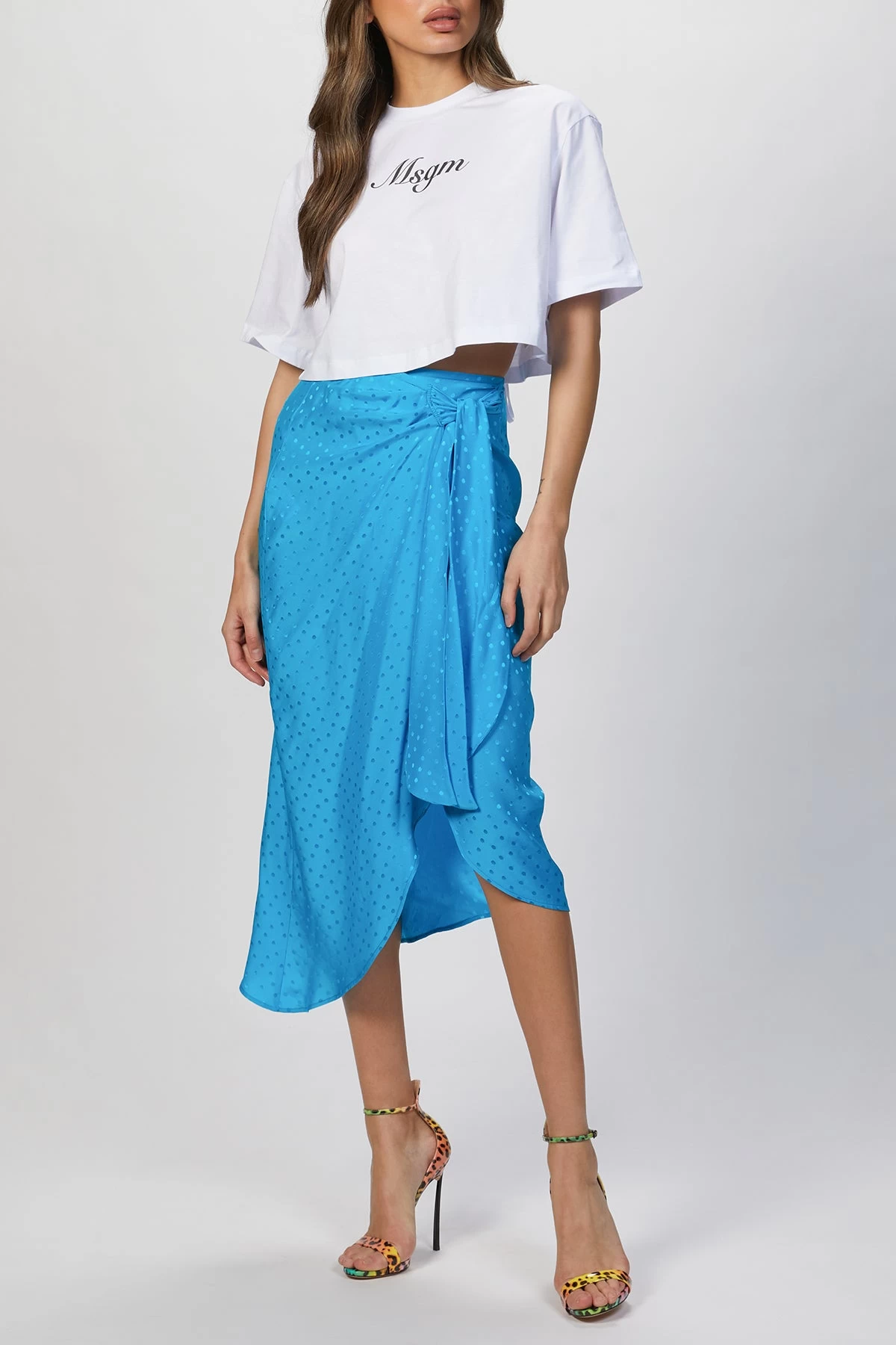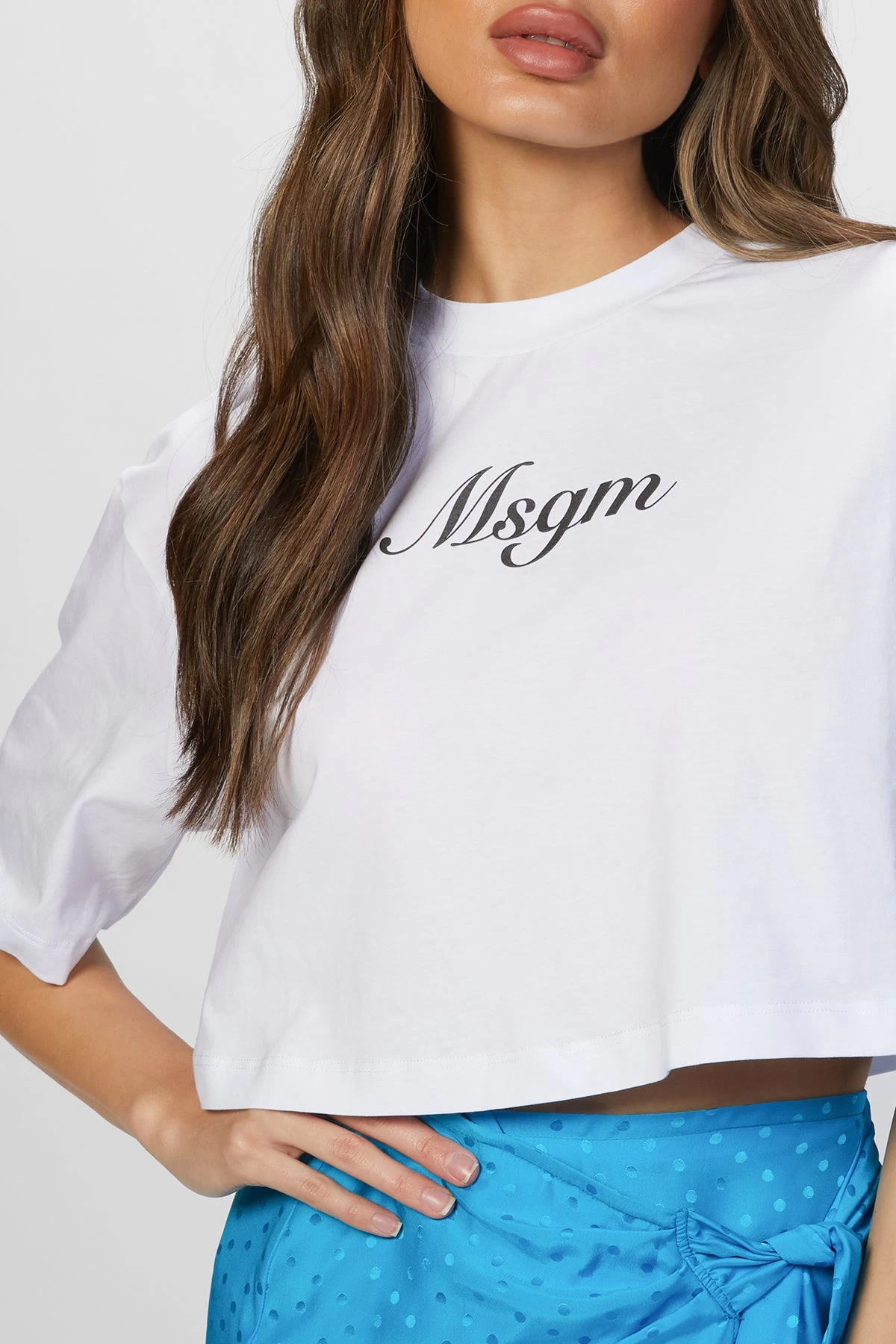 MSGM’s T-shirt is cut for a relaxed fit that’s enhanced by dropped shoulders and boxy short sleeves with the brand’s logo printed across the chest. Made in Italy, it’s cut from white cotton-jersey with an open back that is secured with ties you can fasten in a knot or bow. The cropped hem pairs well with high-rise pants or jeans.