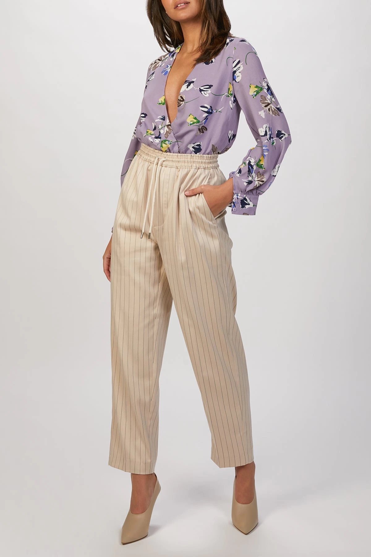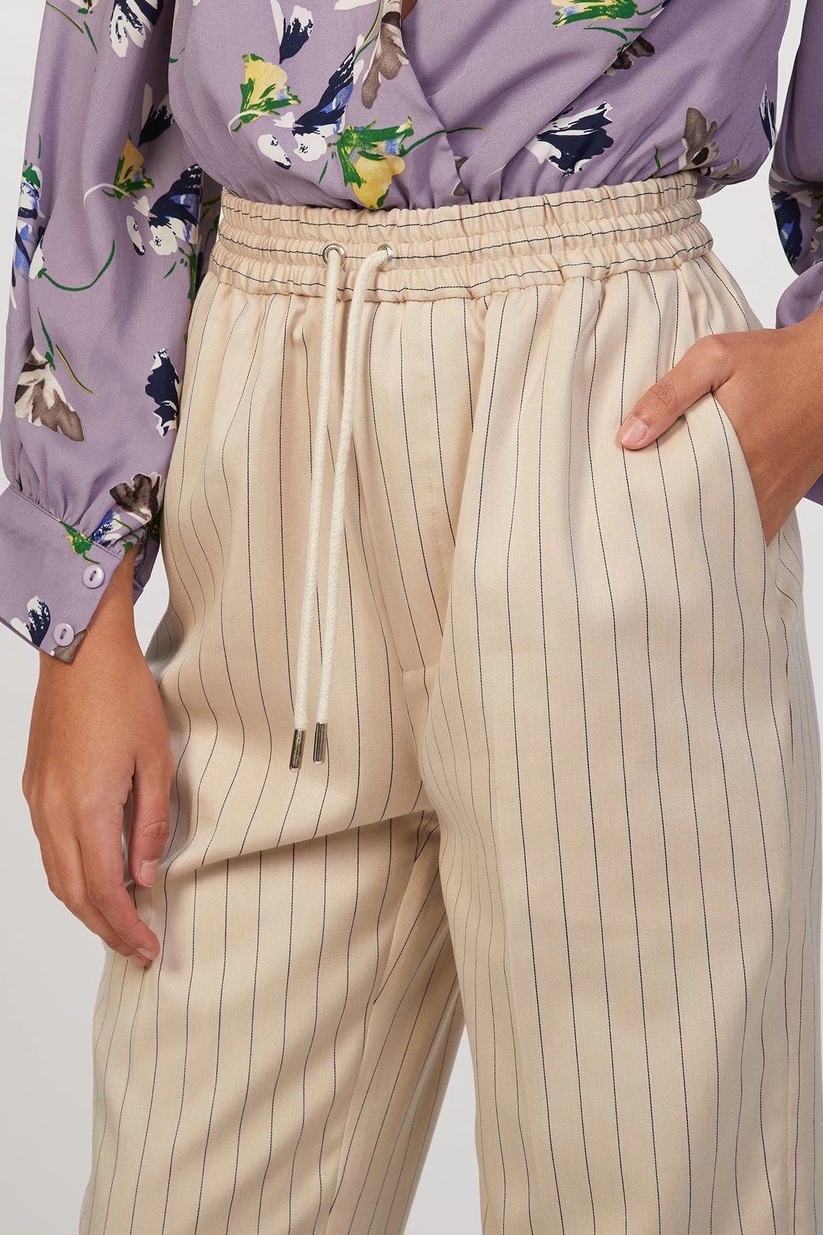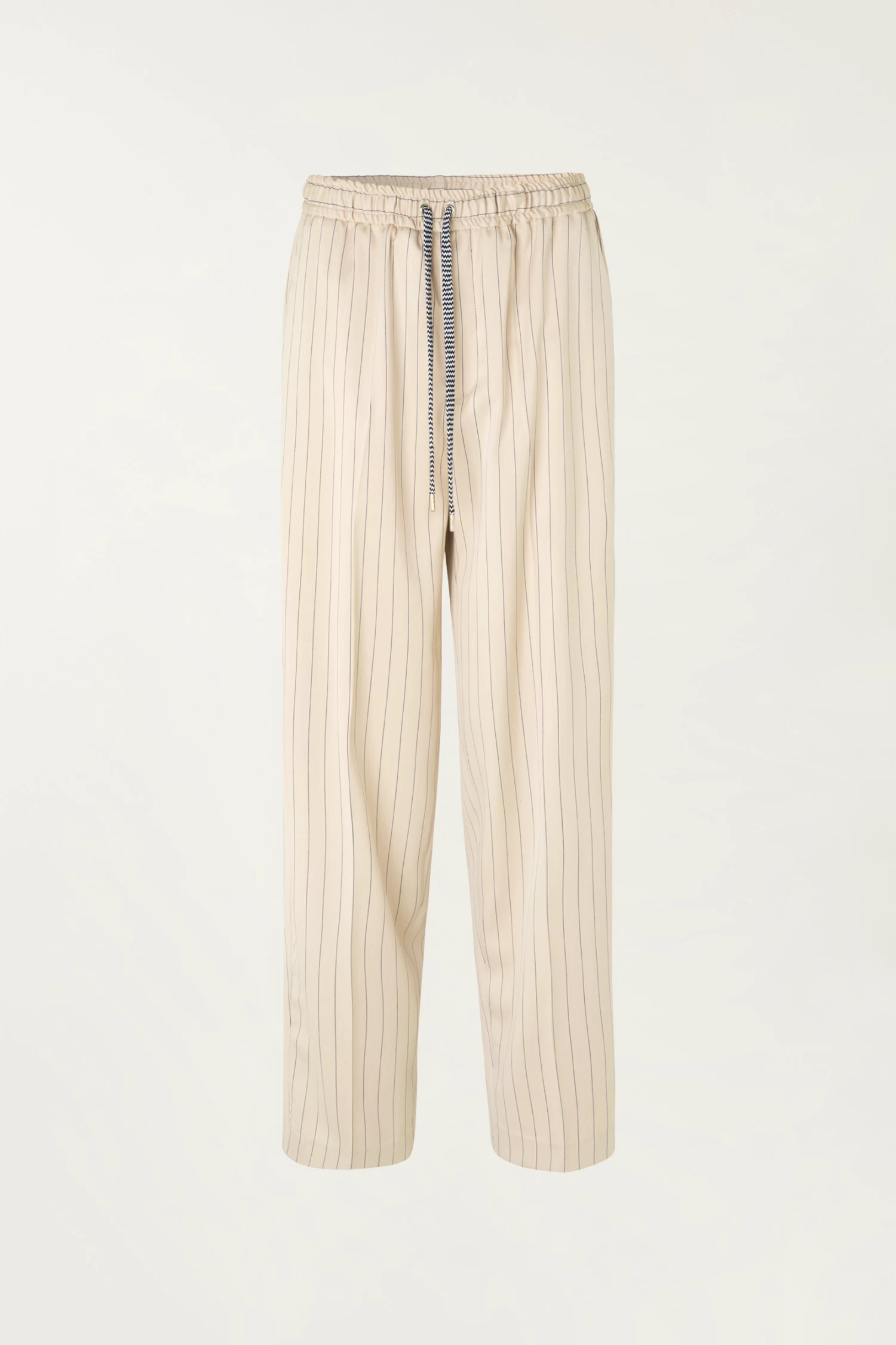 The Tokat Pants are easy-to-wear suit pants crafted from a recycled polyester mix. They feature thin stripes with a front press fold and creases to enhance the straight leg. The pants have side pockets and a high, drawstring elasticated waist for ultimate fit and comfort.