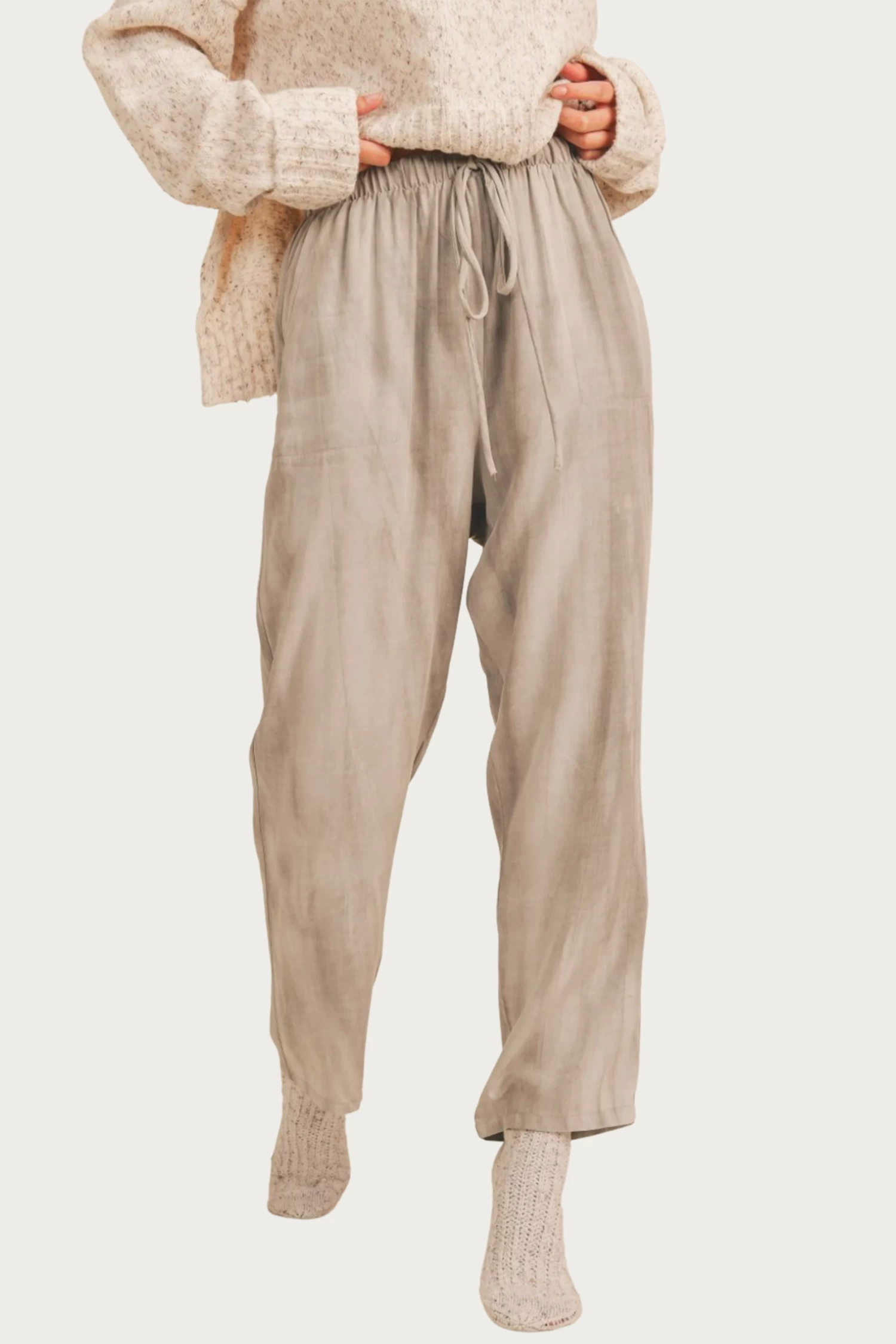 Sadie & Sage’s pants look so chic styled with a half-tucked sweater or a slinky tank. Made of grey modal-jersey, they are cut for a relaxed fit with a comfortable elasticated drawstring waistband that sits high and falls to straight legs that hit at the ankle.Â
